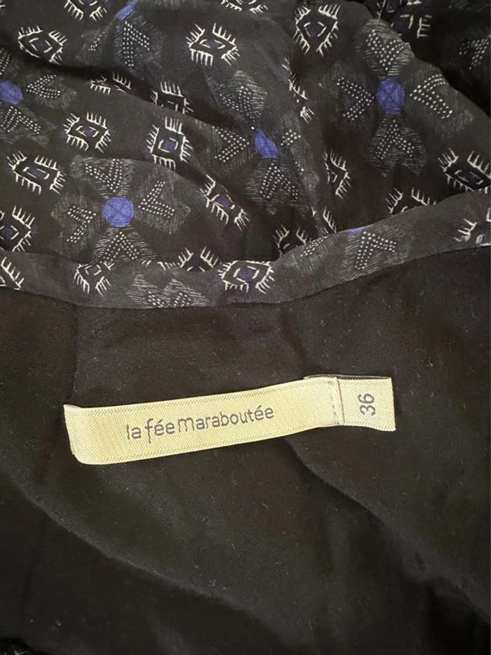Blouse bariolée en soie noire blanche et bleue La fée Maraboutée T36 S - photo numéro 11