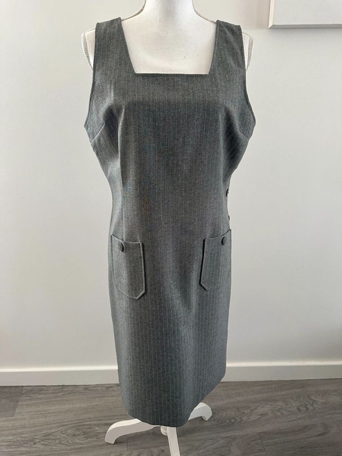Robe à rayures grise et blanche Vintage T44 XXL - photo numéro 2