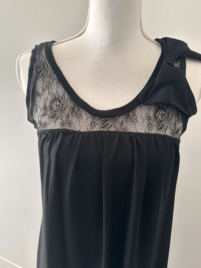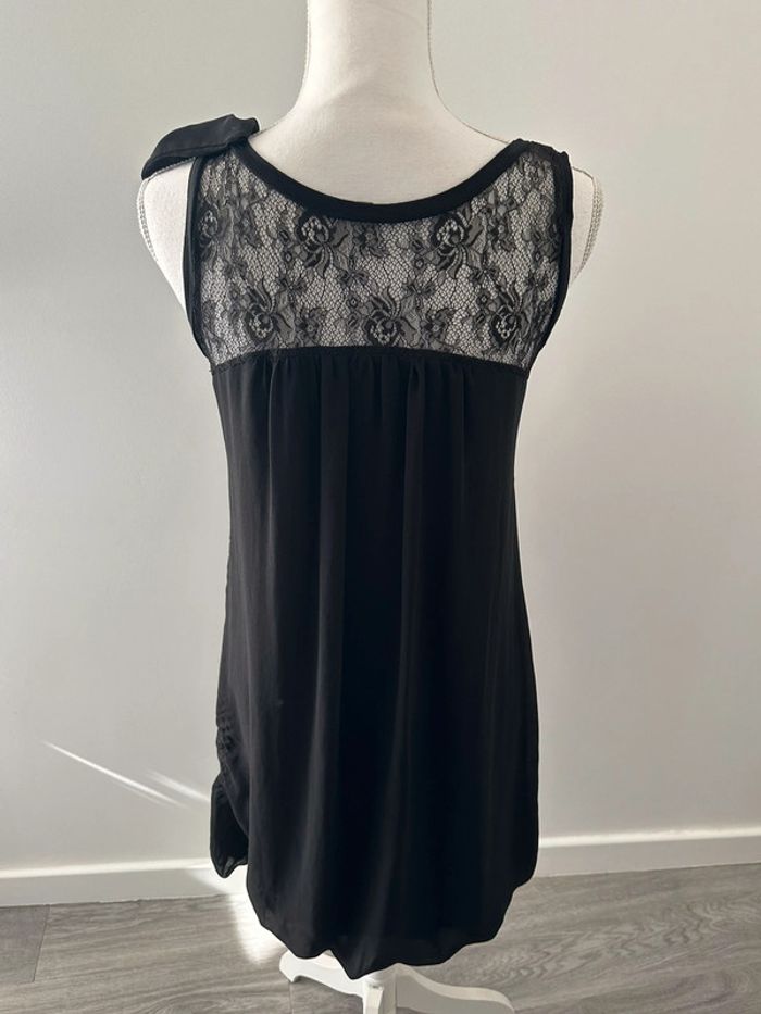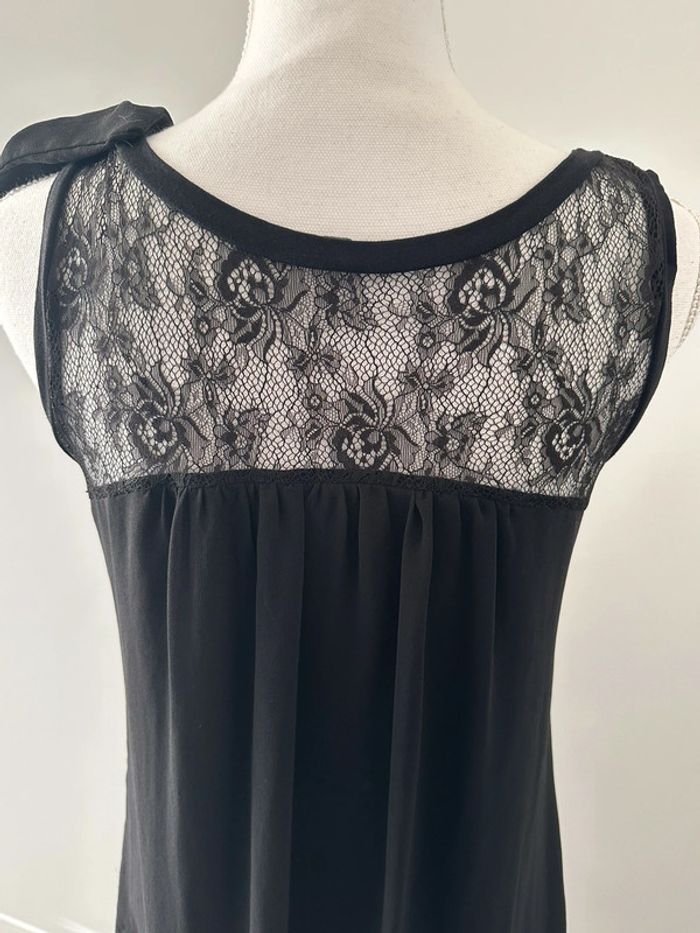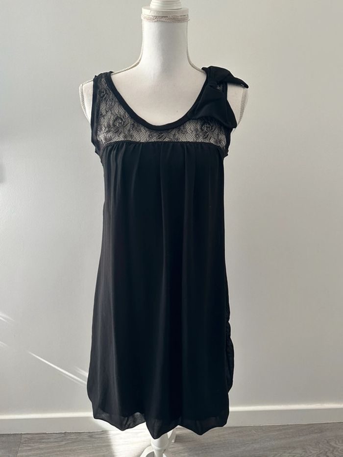 Robe noire et dentelle - Excellent état - Grain de malice - Taille 40 équivalent L - Couleur noire - Dentelle sur le haut - Flot noeud au niveau d’une épaule - Doublure intérieure