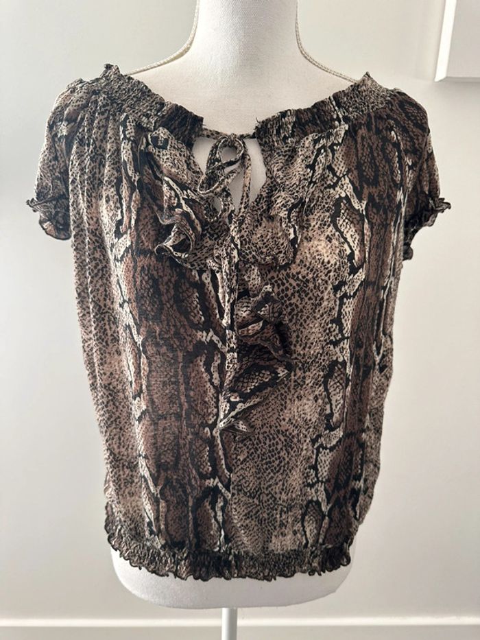 Crop top python serpent - Excellent état - Taille 38 équivalent M - Beige et marron - Elastique au col et sur le bas - Manches courtes - Vintage années 90’