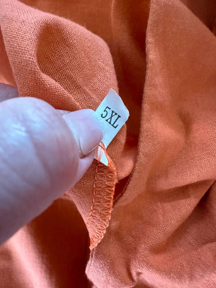 Robe tunique sans manche - Excellent état - Couleur orange - Taille 5XL équivalent 50 - Boutons décoratifs au niveau des épaules - Deux poches sur le bas de la robe Dimensions: - 56cm aisselle à aisselle - 86cm de long