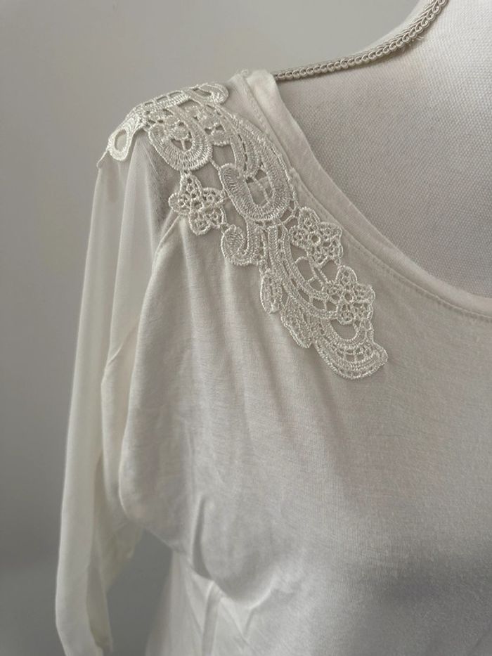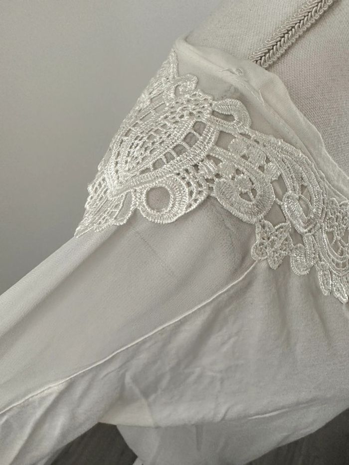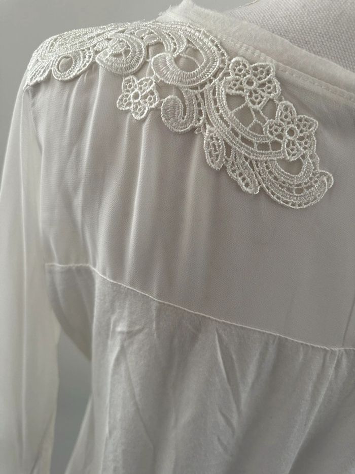 Blouse en dentelle broderie blanche Etam T38 M - photo numéro 3
