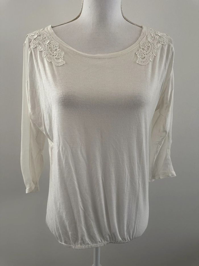 Blouse en dentelle - Excellent état - Marque Etam - Taille M équivalent 38 - Manches 3/4 - Dentelle broderie au niveau des épaules - Couleur blanche