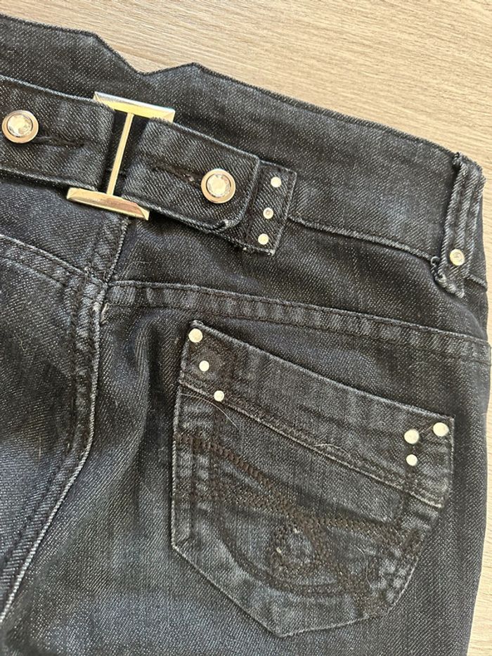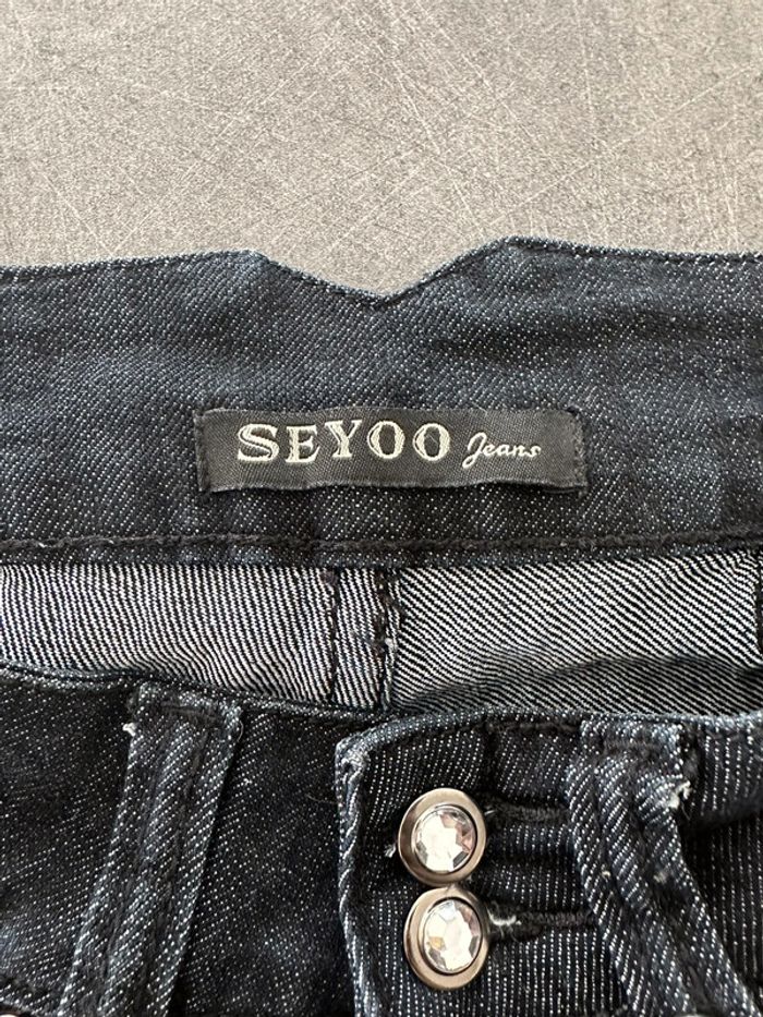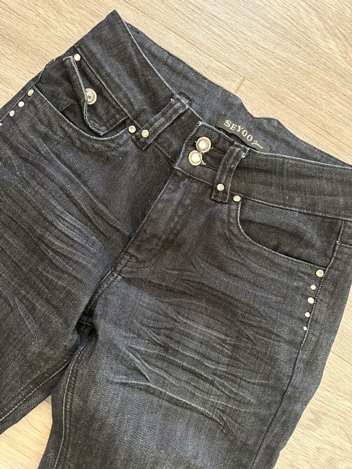 Jean denim - Excellent état - Coupe skinny slim - Bleu marine et gris - Détails et strass argentés - Taille 36 équivalent S - Coton et elastane - Seeyou Jeans