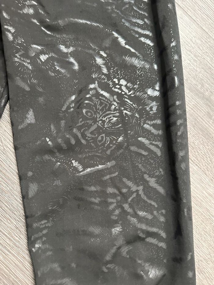 Legging noir et argenté - Excellent état - Taille M/L équivalent 38/40 - Imprimés têtes de tigres et rayures de tigres - Élastique à la taille - Matière stretch - Polyamide et elastane