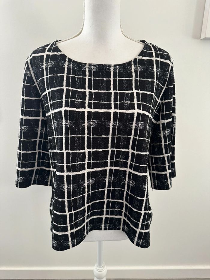 Blouse à carreaux manches courtes noire et blanche TU - photo numéro 2