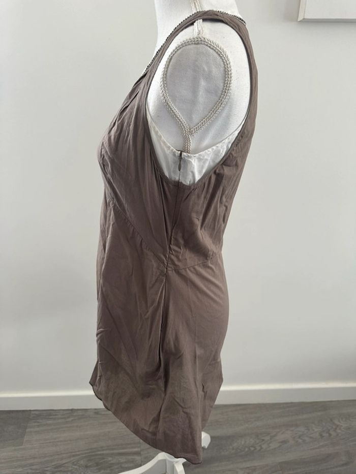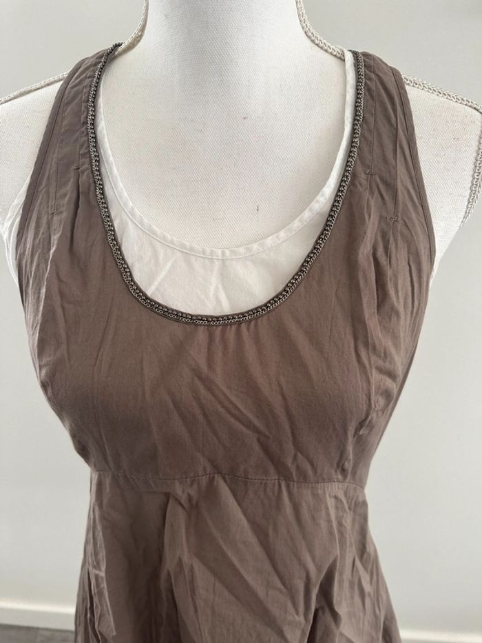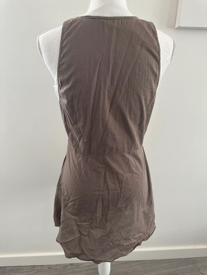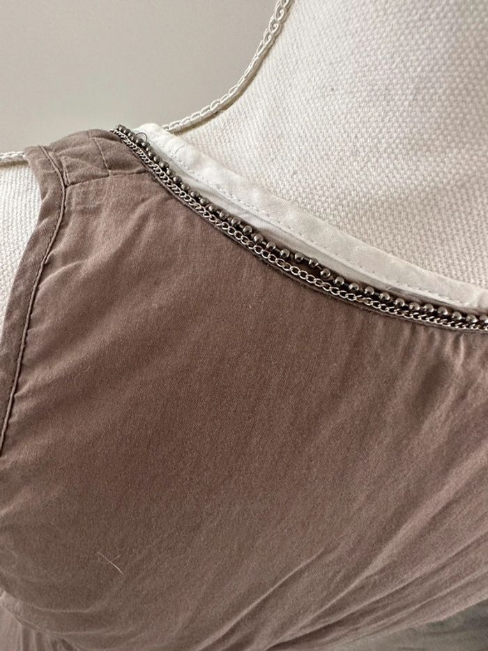 Tunique taupe et blanche - Excellent état - Taille XS équivalent 34 - Mexx Maternity - Couleur taupe et blanche - Perles argentées au niveau du col - Zip sur le côté - 100% Coton