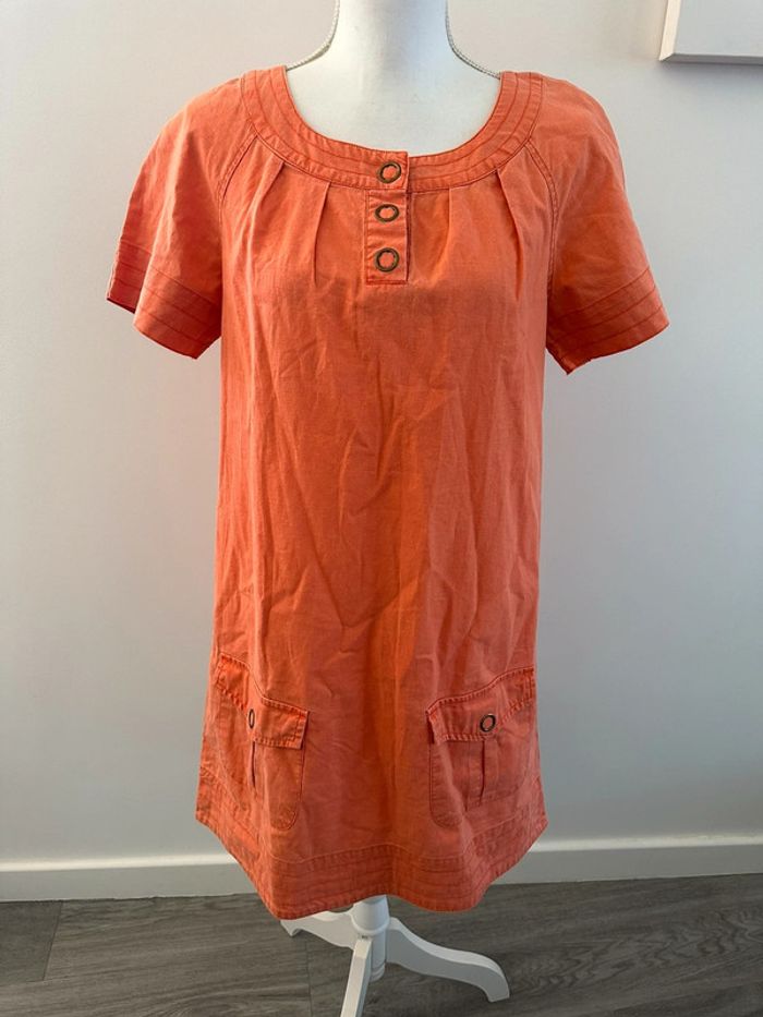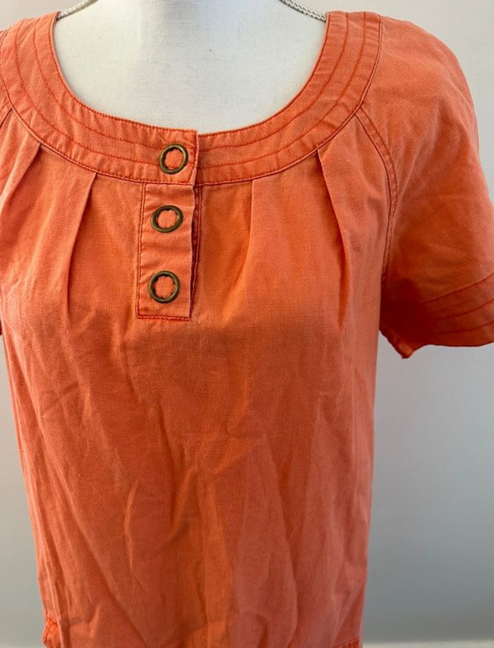 Robe orange - Excellent état - Lin et coton - Taille 38 equivalent M - Manches courtes - Deux poches - Autre Ton Vintage années 90 - Pressions au niveau du col