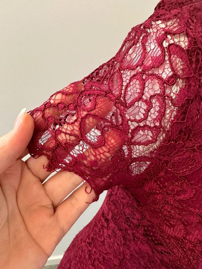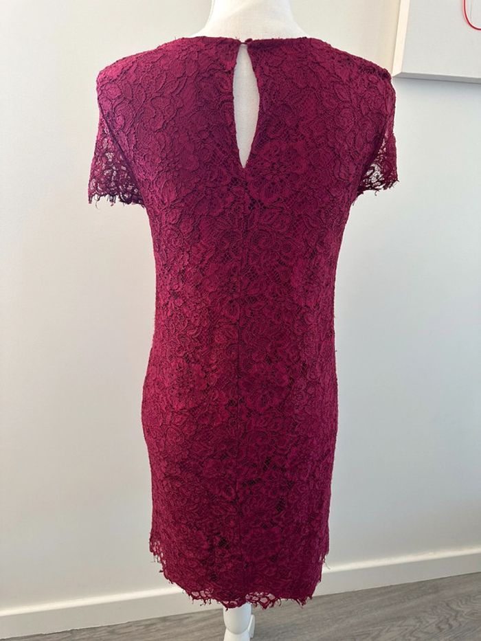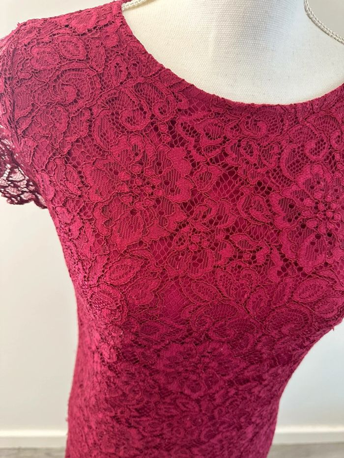 Robe en dentelle - Excellent état - Rose Fuchsia - Taille 36 équivalent S - Manches courtes - Doublure intérieure - Coupe moulante - Dentelle fleurs - Kiabi