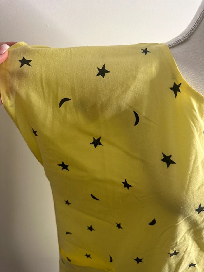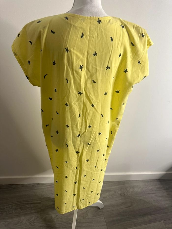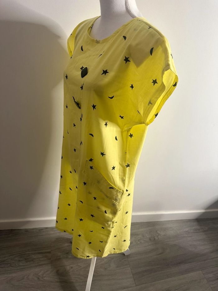 Robe lunes et étoiles - Excellent état - Taille 42/44 équivalent XL/XXL - Manches courtes - Jaune et noire - Trois boutons décoratifs - Deux poches - Epaulettes, possibilité de les retirer - Vintage années 90’