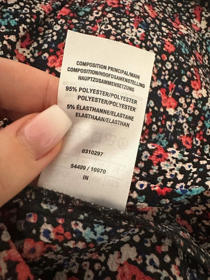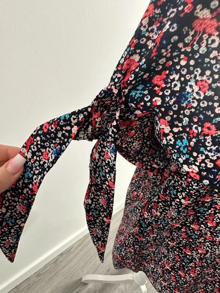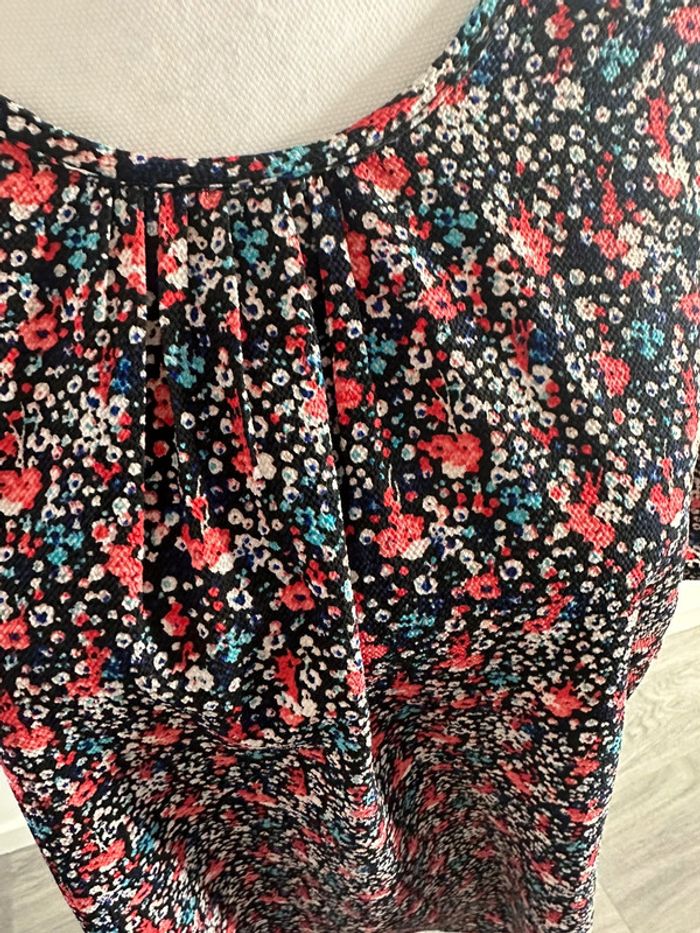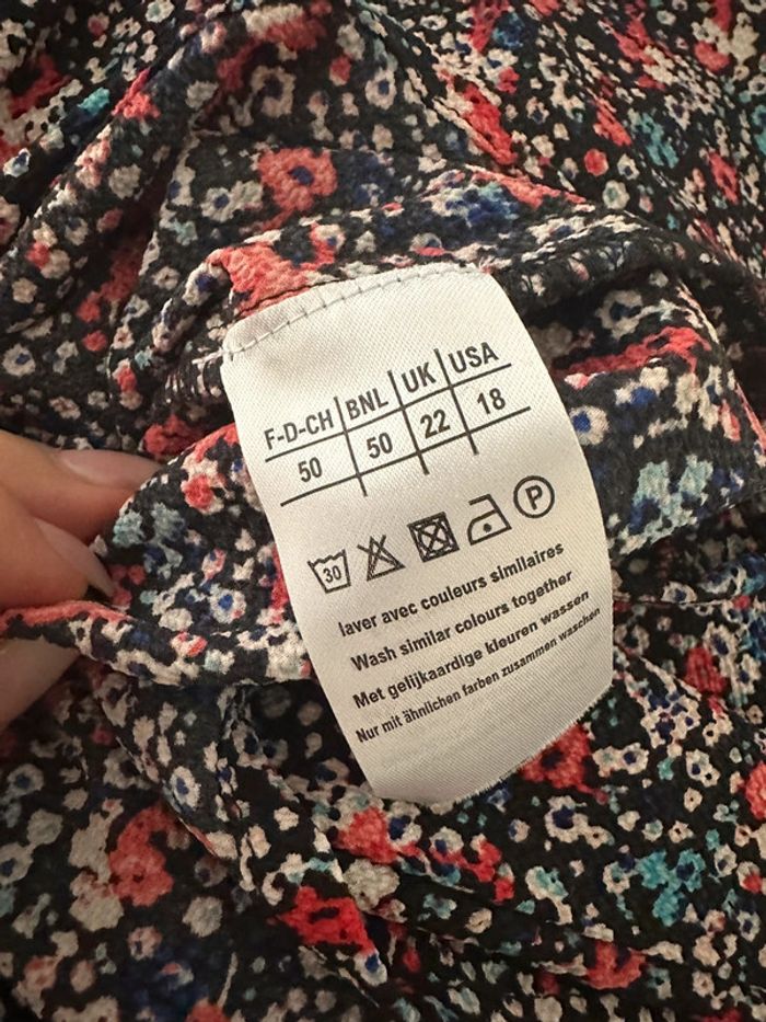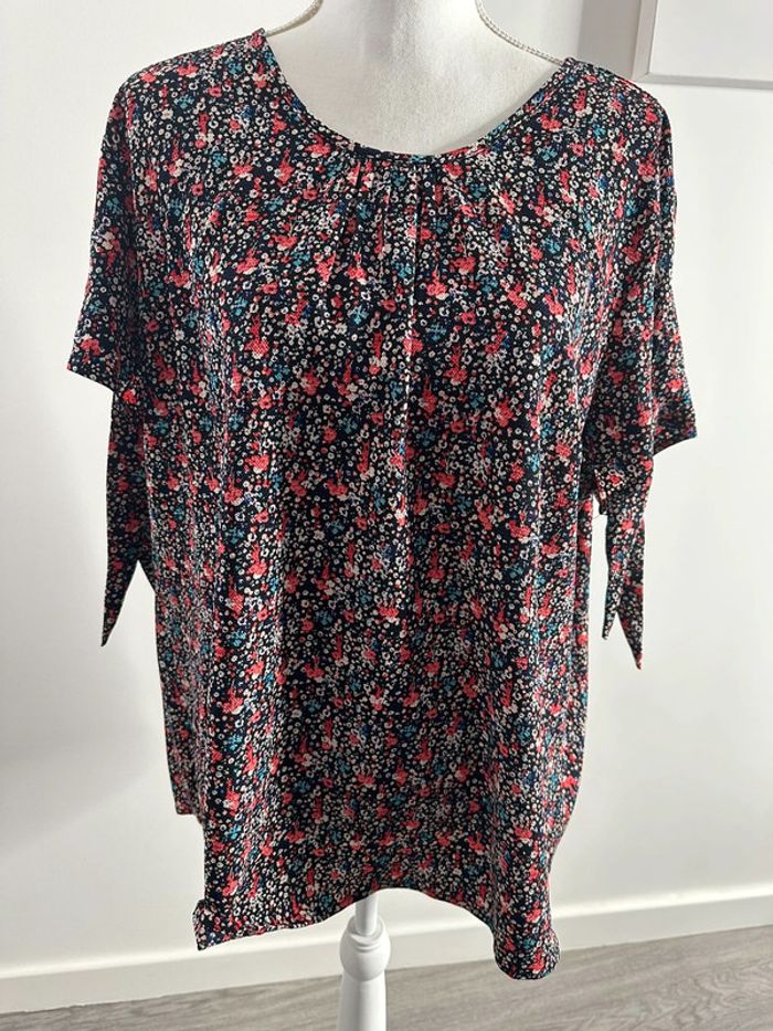 Blouse à fleurs multicolore - Excellent état - Taille 50 équivalent 5XL - Imprimés fleurs - Multicolore - À nouer au niveau des manches - Polyester et elastane Dimensions: - Aisselle à aisselle 68 à 75cm - Longueur 75cm