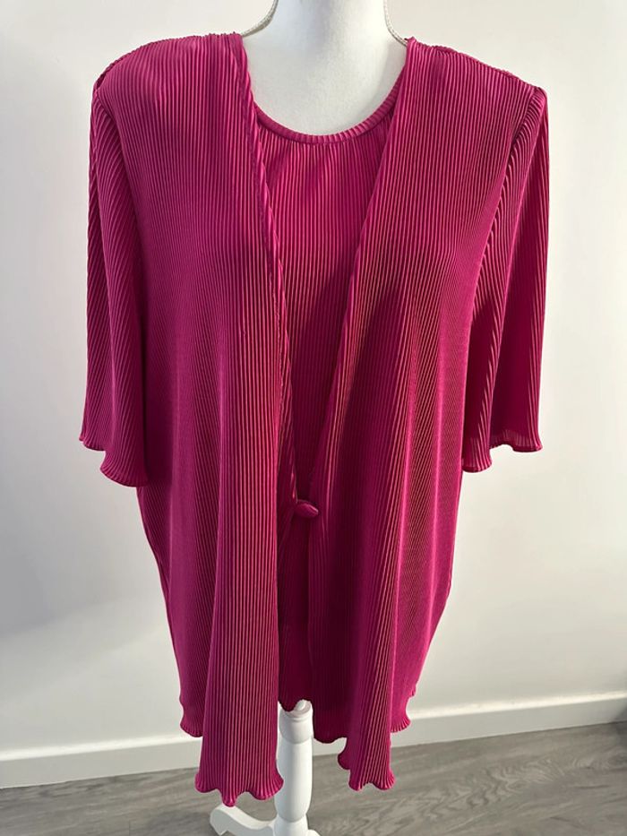 Blouse plissée - Excellent état - Taille 48 équivalent 4XL - Manches courtes - Couleur rose framboise écrasée - C&A Vintage années 90 - Effet T-shirt blouse 2 en 1