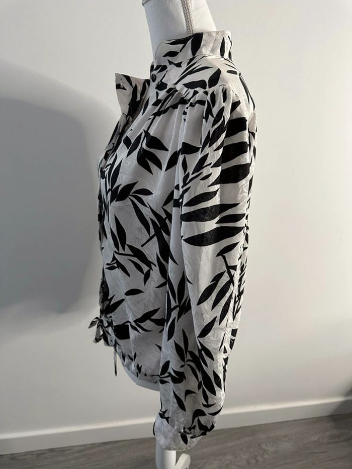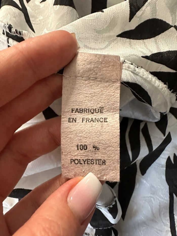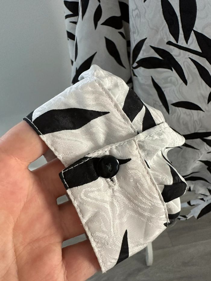 Blouse tropicale satinée noire et blanche Vintage T44 - photo numéro 7
