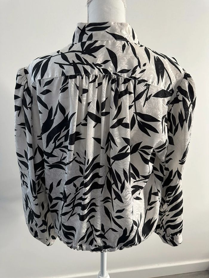 Blouse tropicale satinée noire et blanche Vintage T44 - photo numéro 4