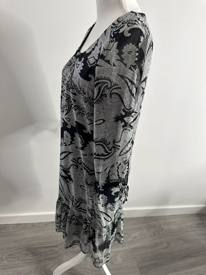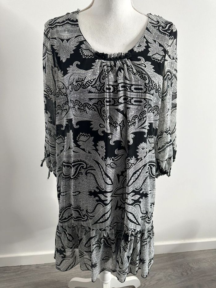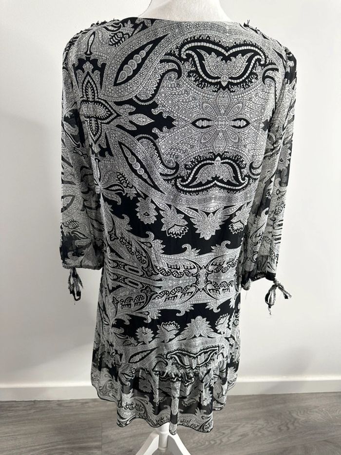 Robe Mandala - Excellent état - Noire et blanche - Jus d’Orange - Taille 42 équivalent XL - Doublure intérieure - Manches 3/4 - Imprimés mandalas