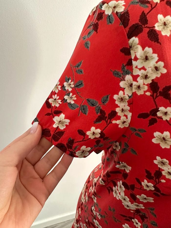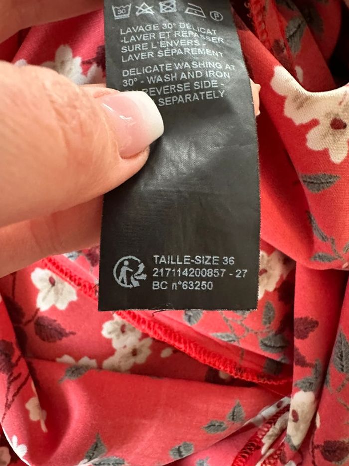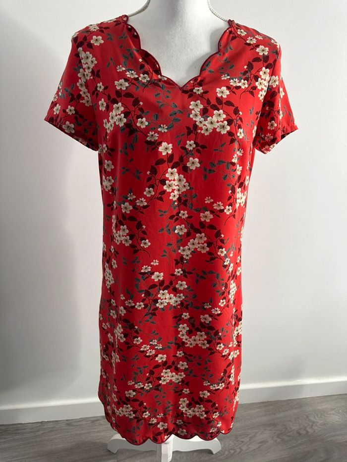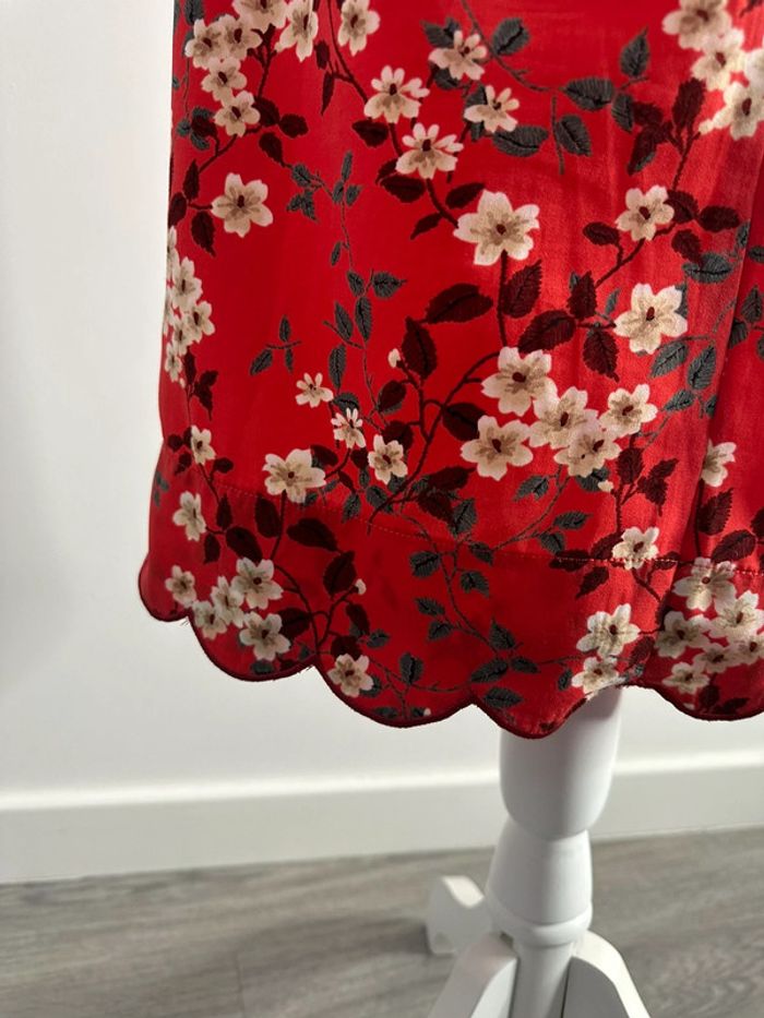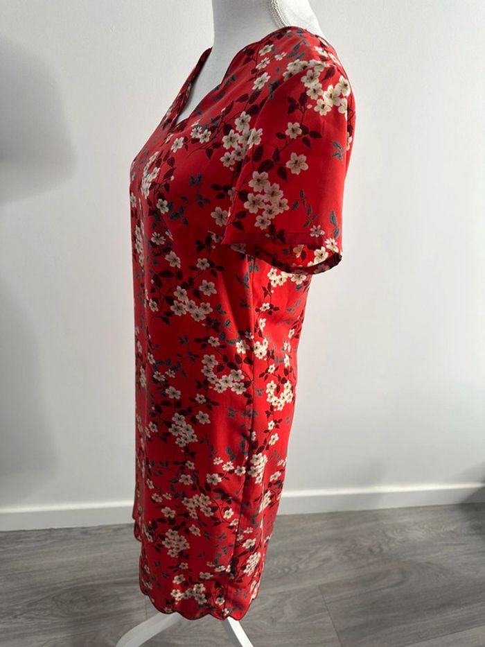 Robe à fleurs - Excellent état - Burton - Taille 36 equivalent S - 100% polyester - Rouge et blanche - Imprimés fleurs - Manches courtes - Zip dans le dos