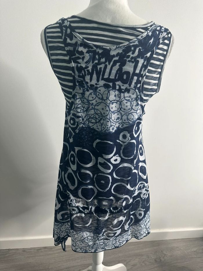 Robe bariolée marine et blanche Cassis T2