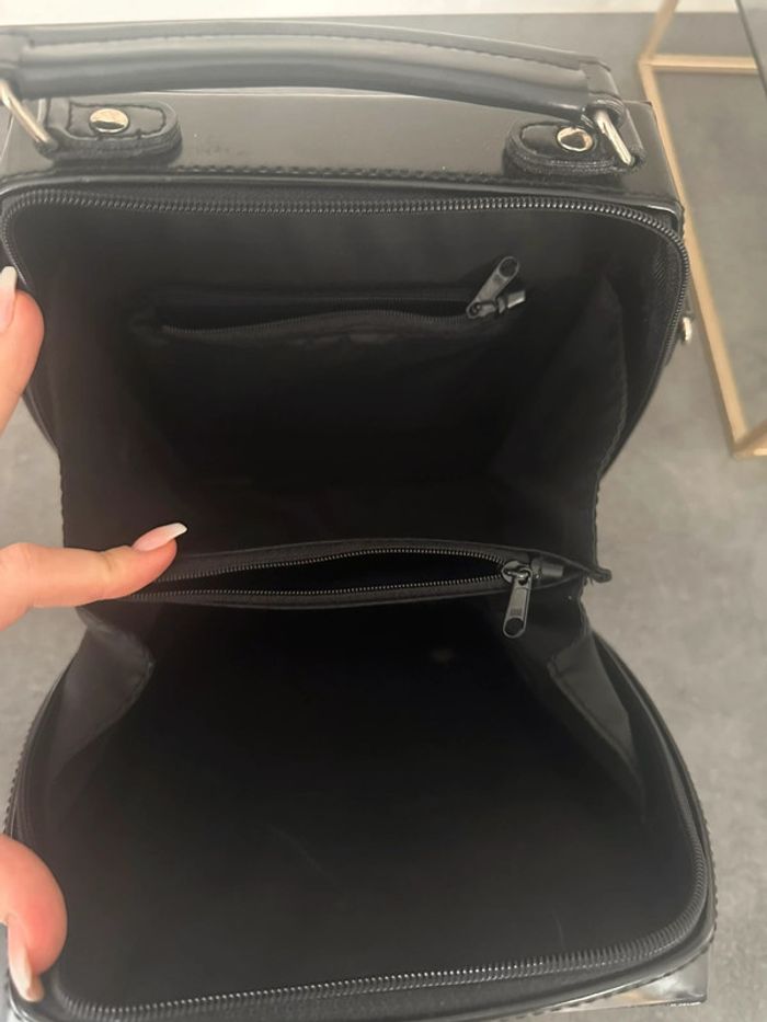 Sac noir verni - Excellent état - Noir et argenté - Une poigne anses - Se ferme avec un zip - Piccoli Italia - Fabrication italienne 🇮🇹 - Forme arrondie - Possibilité d’ajouter une bandoulière - Grande capacité intérieure avec plusieurs compartiments - Ouverture accordéon - Vintage années 90 Dimensions: - Hauteur 22cm (avec anse 26cm) - Largeur 23cm - Profondeur 8cm