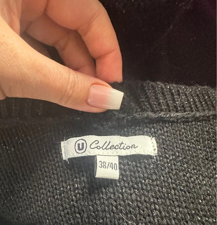 Petite robe noire - Excellent état - U Collection - Taille 38/40 equivalent M/L - Noire et argentée - Manches courtes
