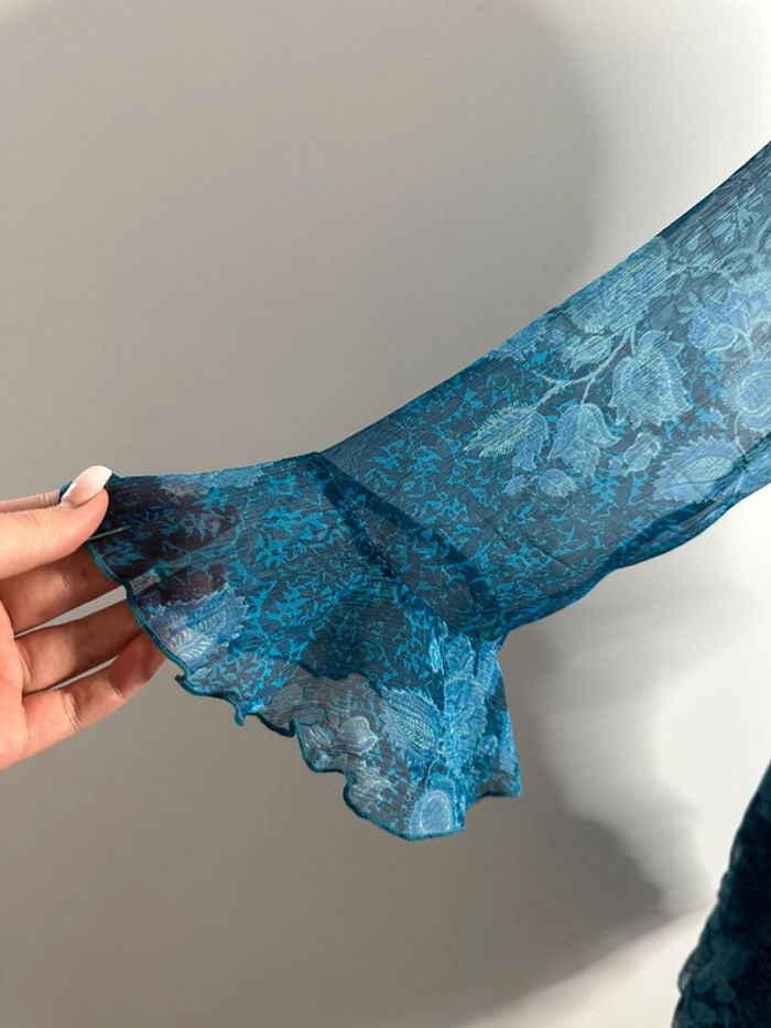 Ensemble Vintage à fleurs - Excellent état - Dans les tons bleus - Taille 38 équivalent M - Boléro cache cœur + jupe - En voile - Zip et doublure dans la jupe - Camaïeu - Années 90-2000 Non cumulable avec les réductions par lot #vintage #vintagestyle #xanaka #flowers #flowerpower #flowerpowervintage #retro #y2k #y2kstyle #y2kfashion