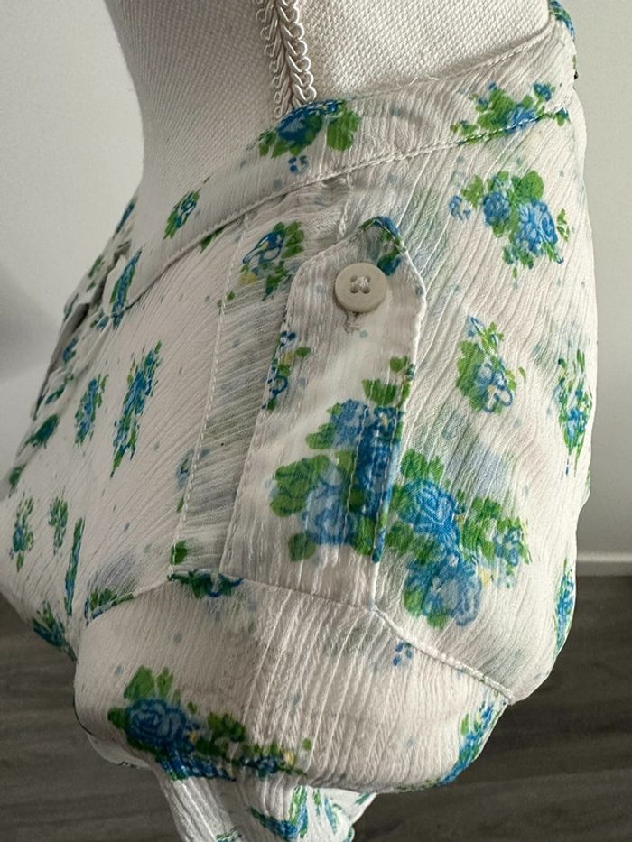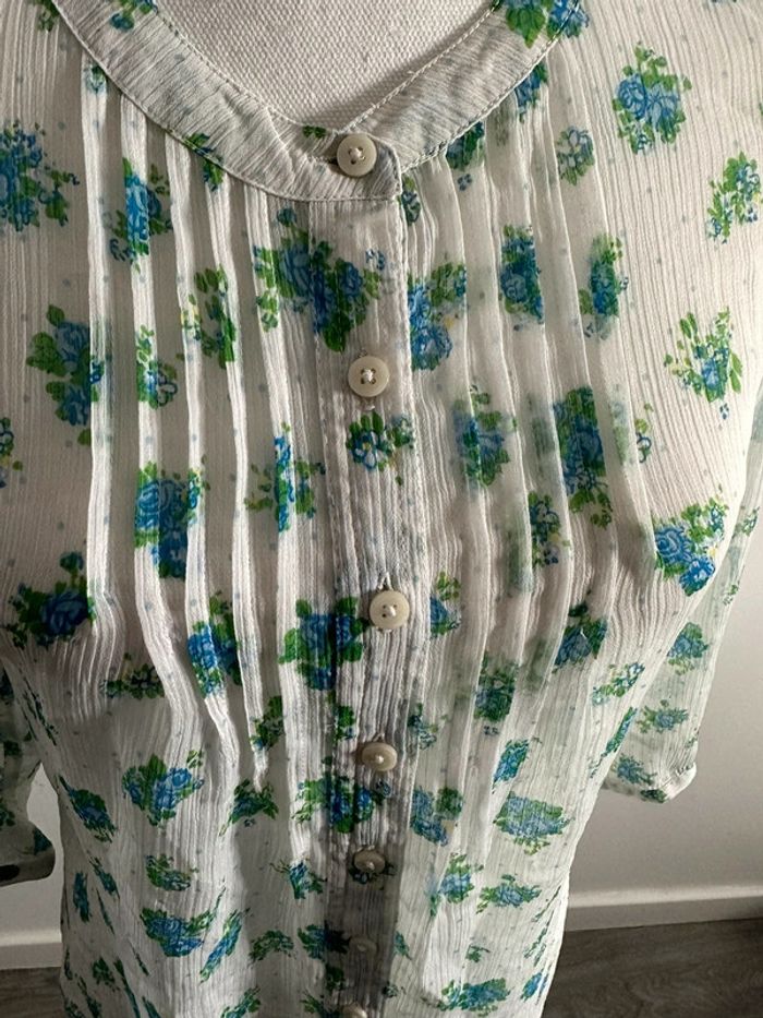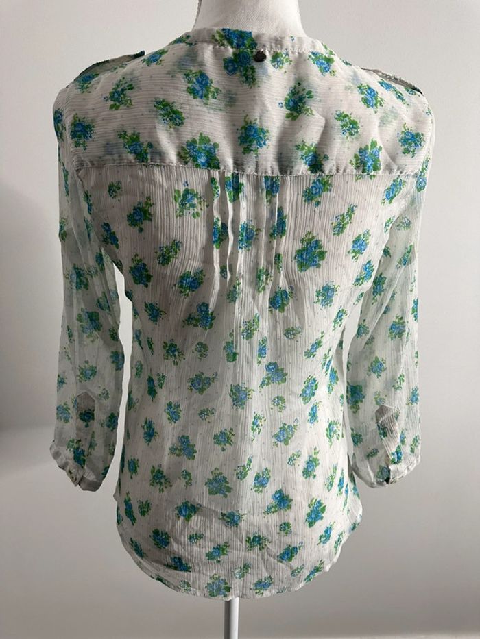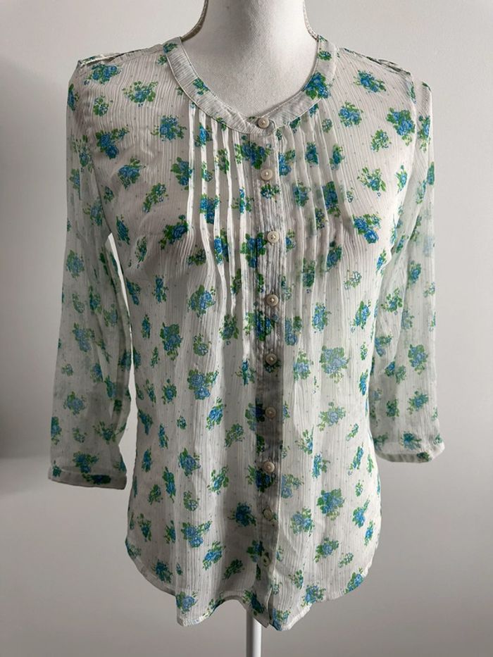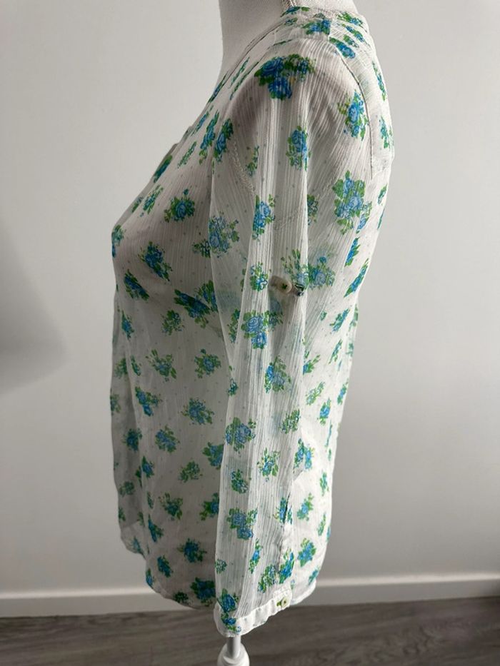 Blouse à fleurs - Excellent état - Taille S équivalent 36 - Blanche bleue et verte - Manches 3/4 - Boutons sur l’avant - 100% polyester