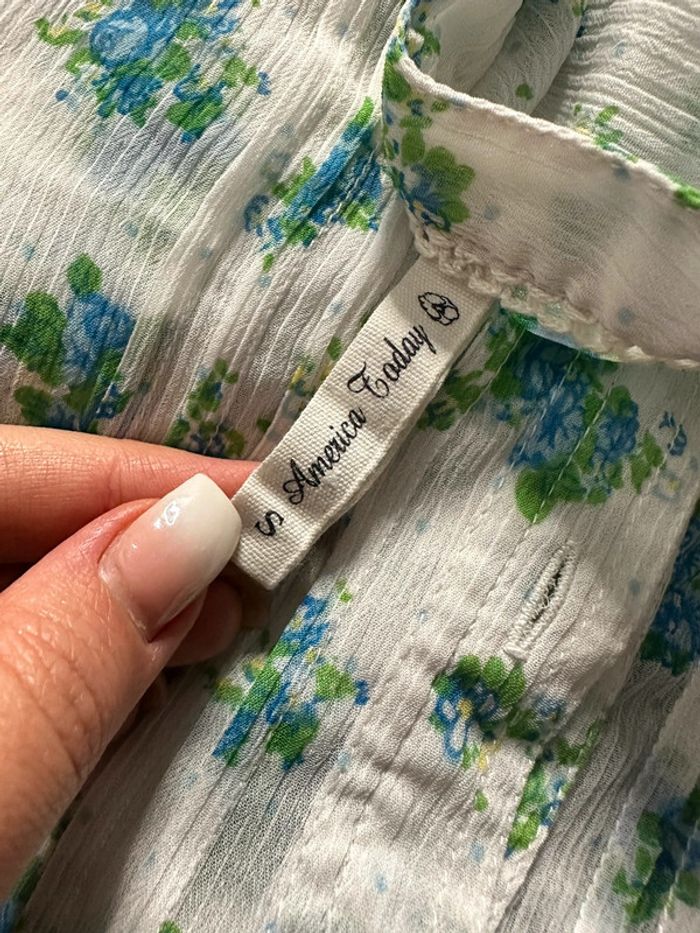 Blouse à fleurs blanche et bleue TS - photo numéro 6