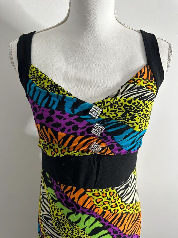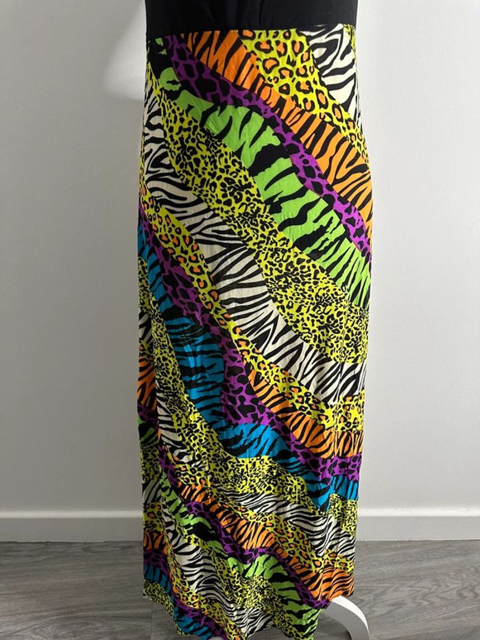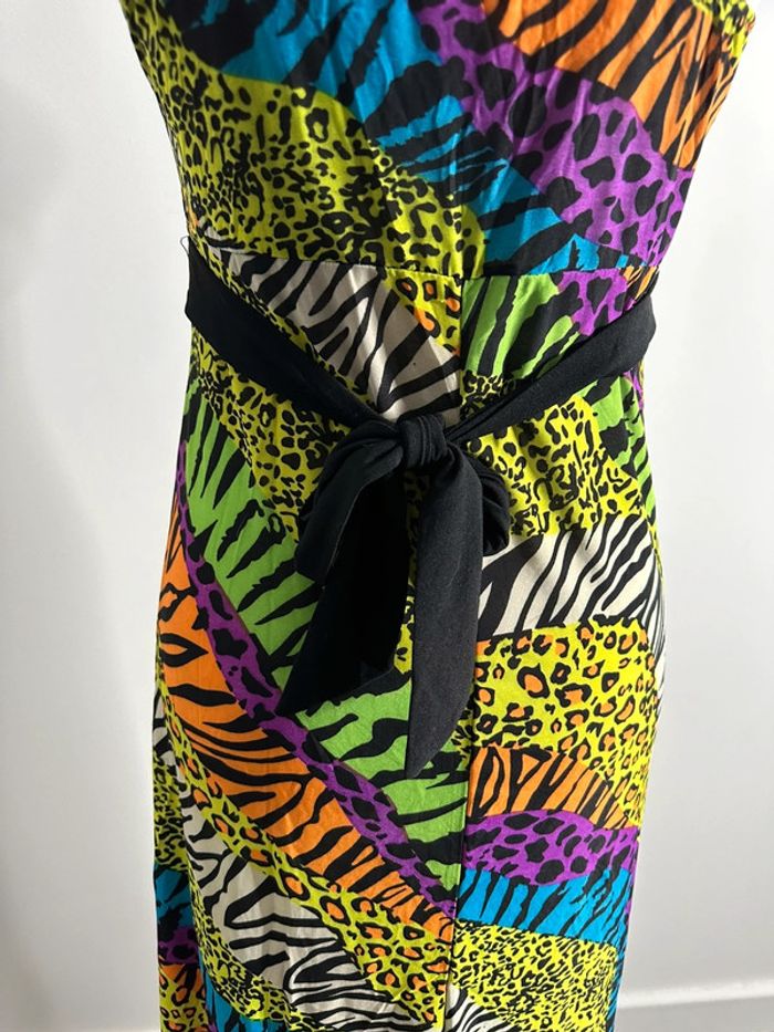 Robe psychédélique multicolore - Excellent état - Noire et multicolore - Taille 40 équivalent L - Tissus fluide - Imprimés animalier - Esprit psychédélique