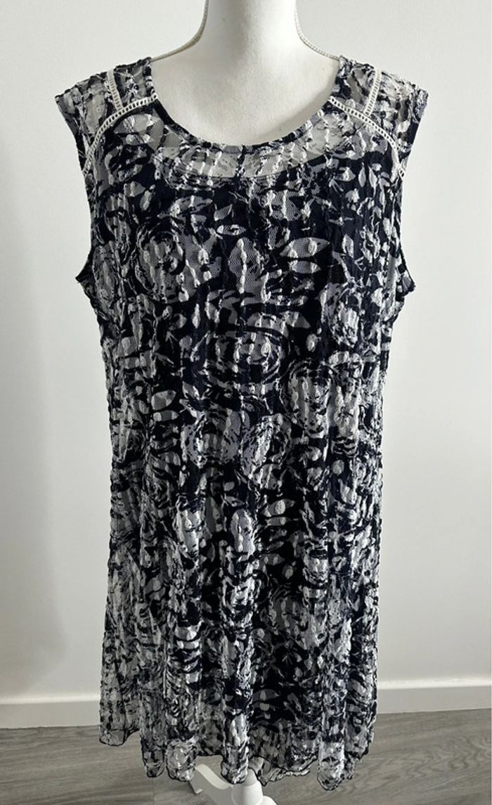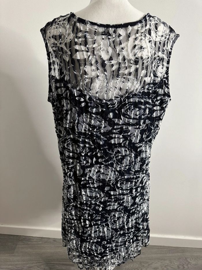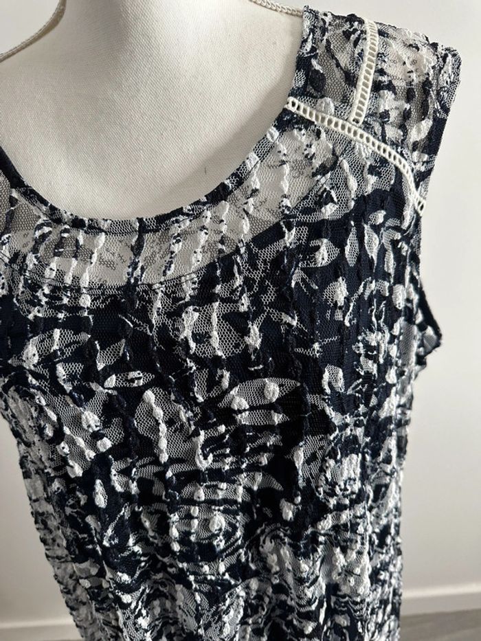 Robe en dentelle - Excellent état - Afibel - Taille 46 equivalent 3XL - Bleue marine et blanche - Doublure intérieure - Transparente sur le haut - Dentelle et fleurs