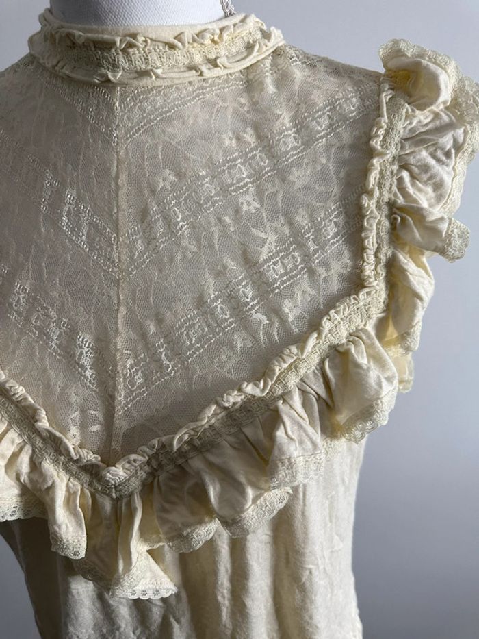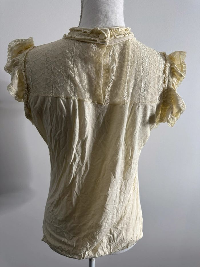 Blouse dentelle et broderies beige crème T38 - photo numéro 3