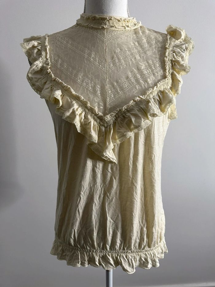 Blouse dentelle et broderies beige crème T38 - photo numéro 2