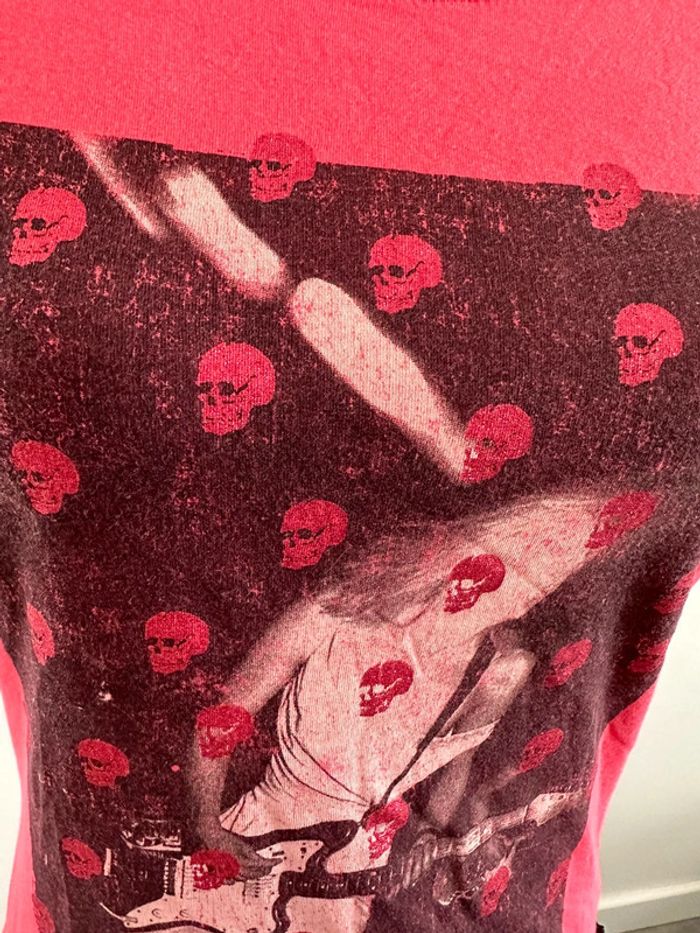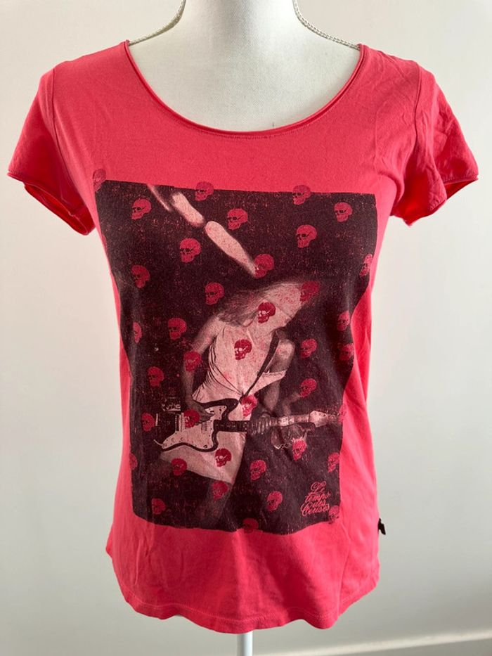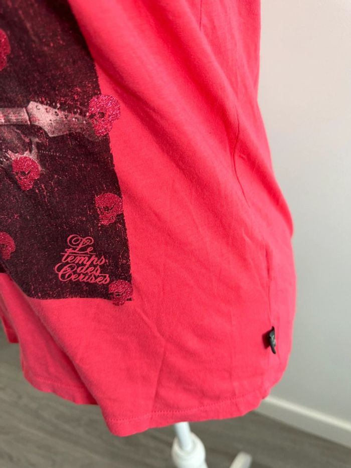 T-shirt rose - Excellent état - Le temps des Cerises - Taille S équivalent 36 - 100% coton - Fabriqué au Portugal - Imprimés têtes de mort et strass