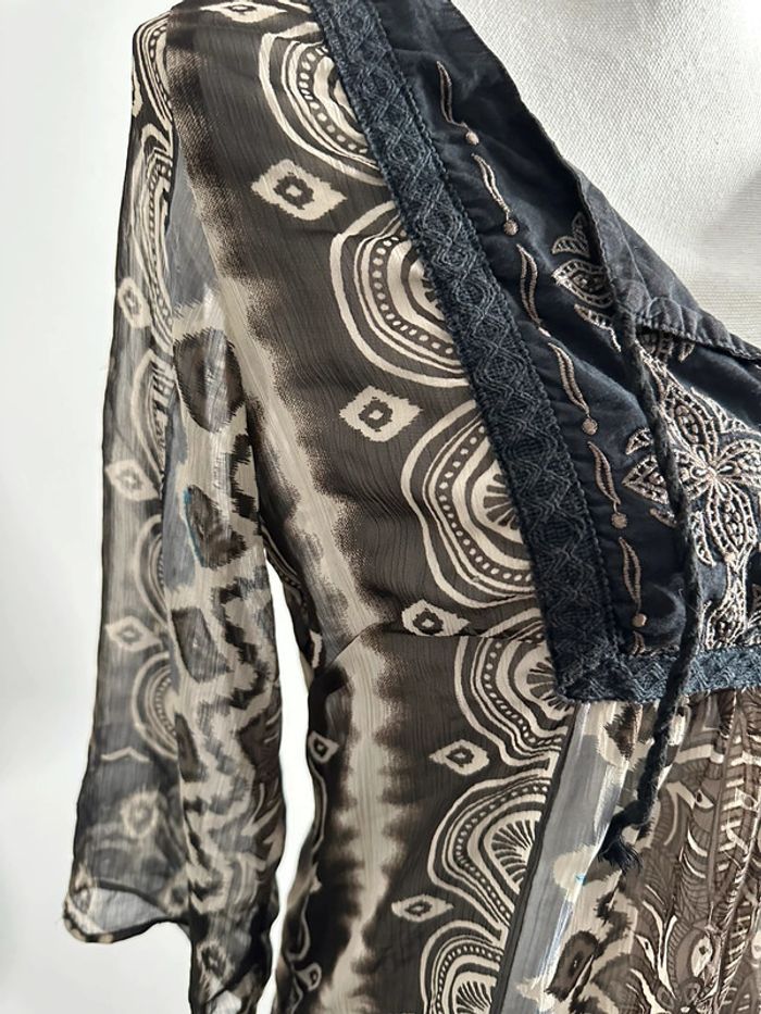 Blouse ethnique marron et beige M&S Mode T38 - photo numéro 6