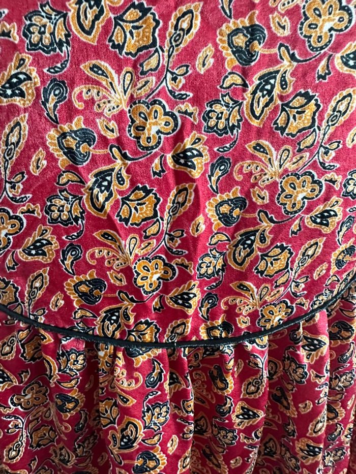 Robe bohème gypsy - Excellent état - Taille 38 équivalent M - Rouge et orange - Surpiqûres noires - 100% polyester