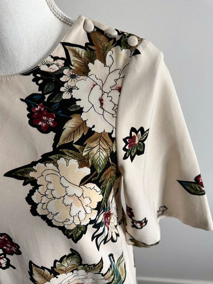 Robe à fleurs beige crème Zara TXS - photo numéro 3