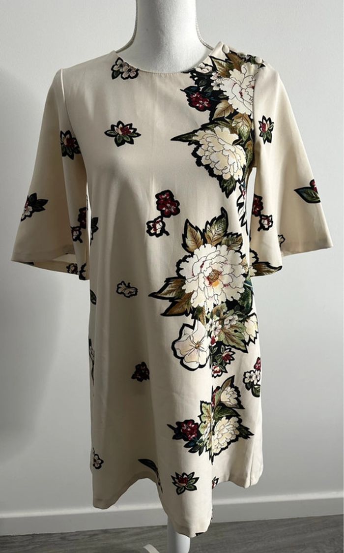 Robe à fleurs beige crème Zara TXS - photo numéro 1