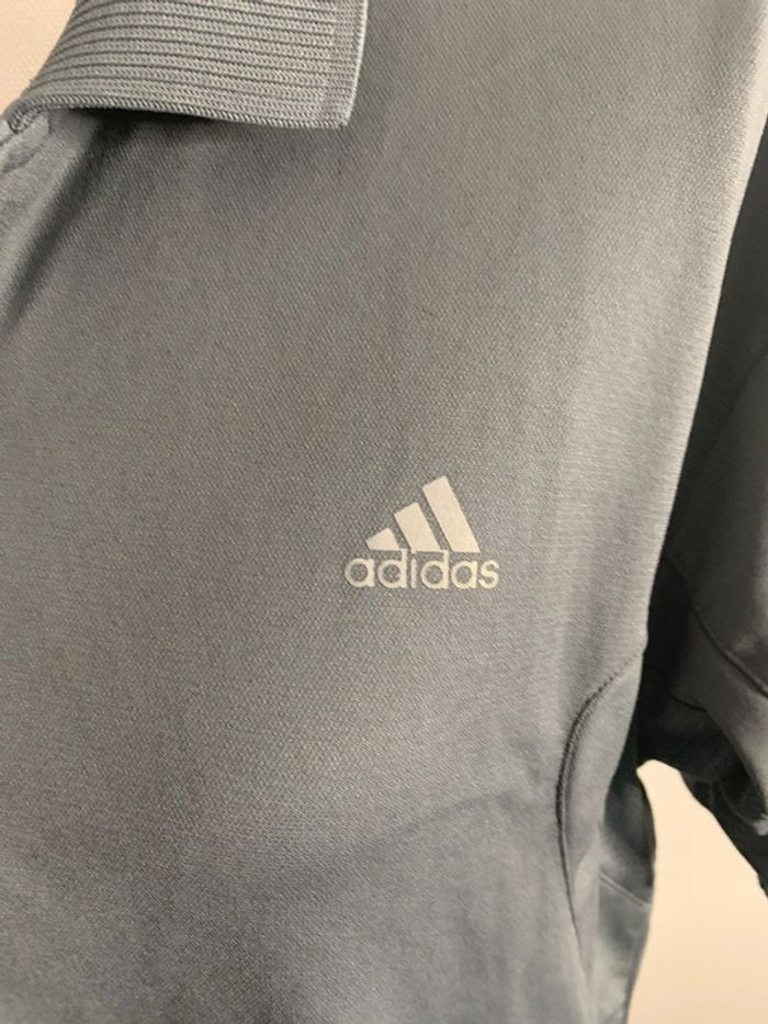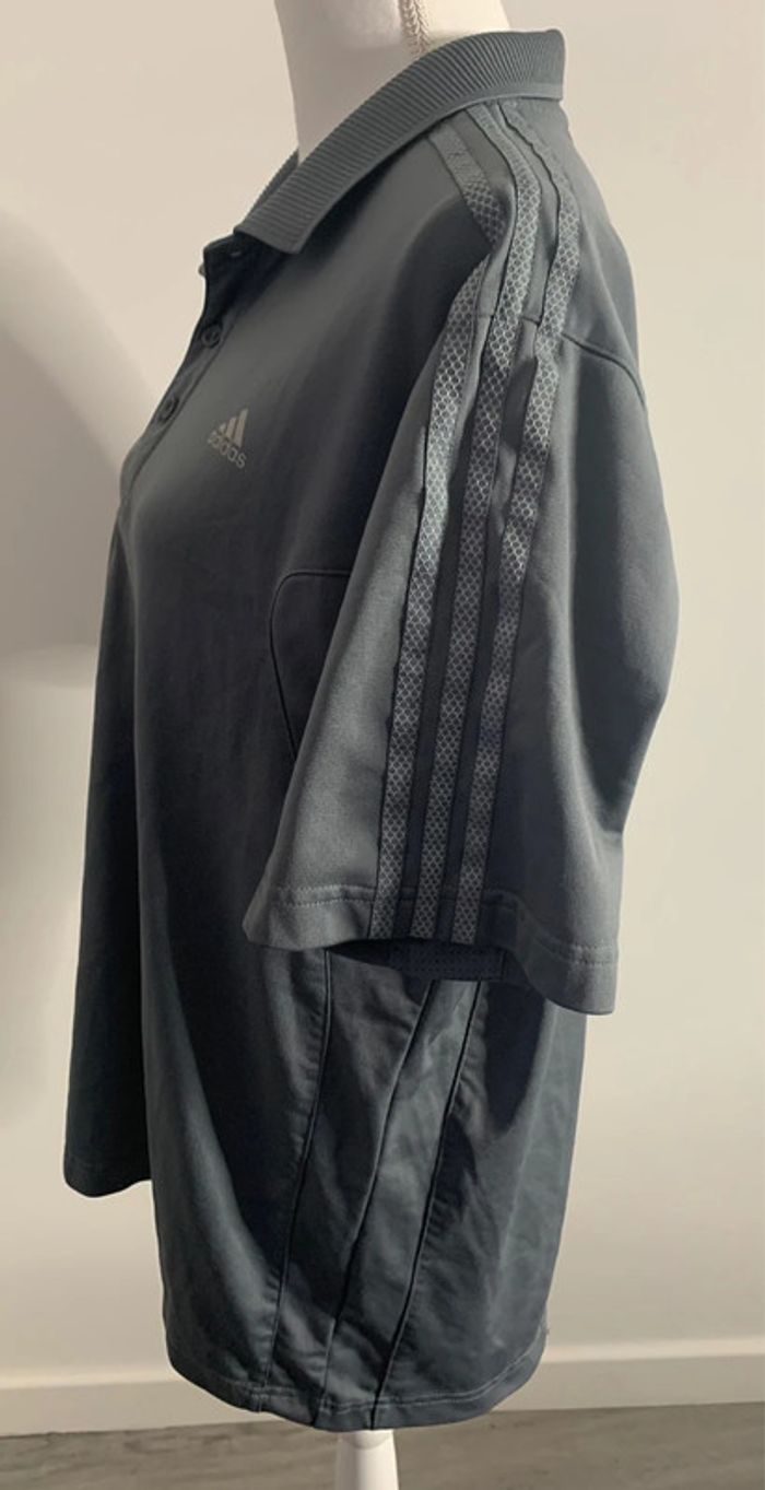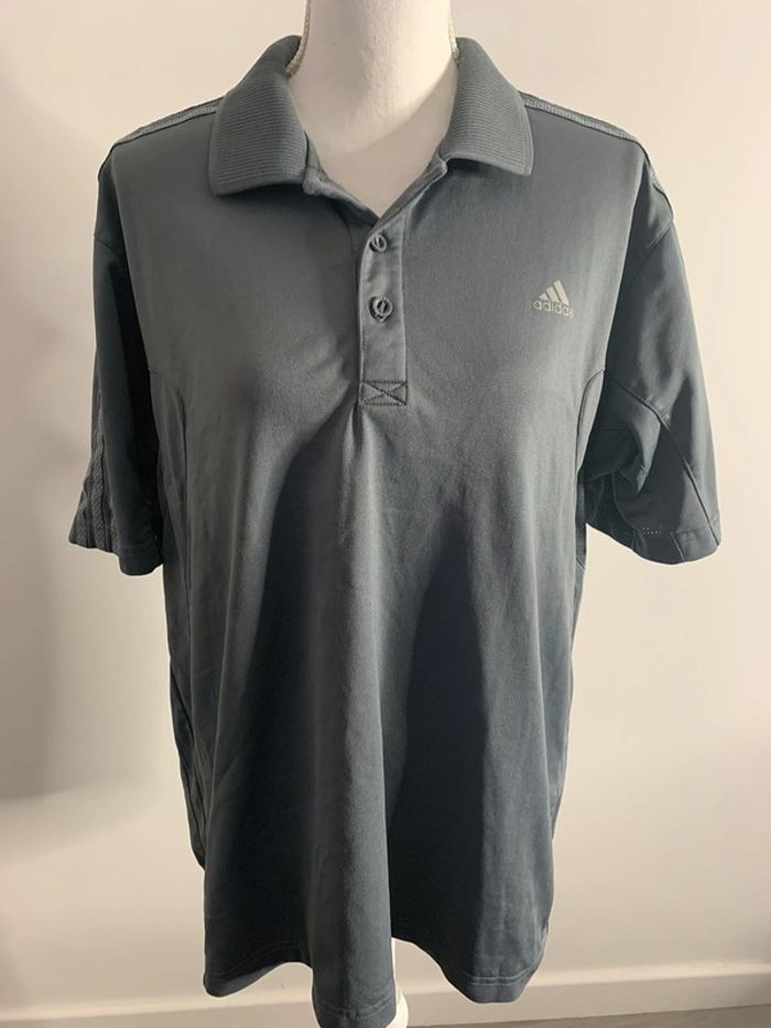 Polo gris satiné - Excellent état - Adidas - Homme mais peut être unisexe - Taille XL - 100% Polyester - Manches courtes - Boutons au niveau du col