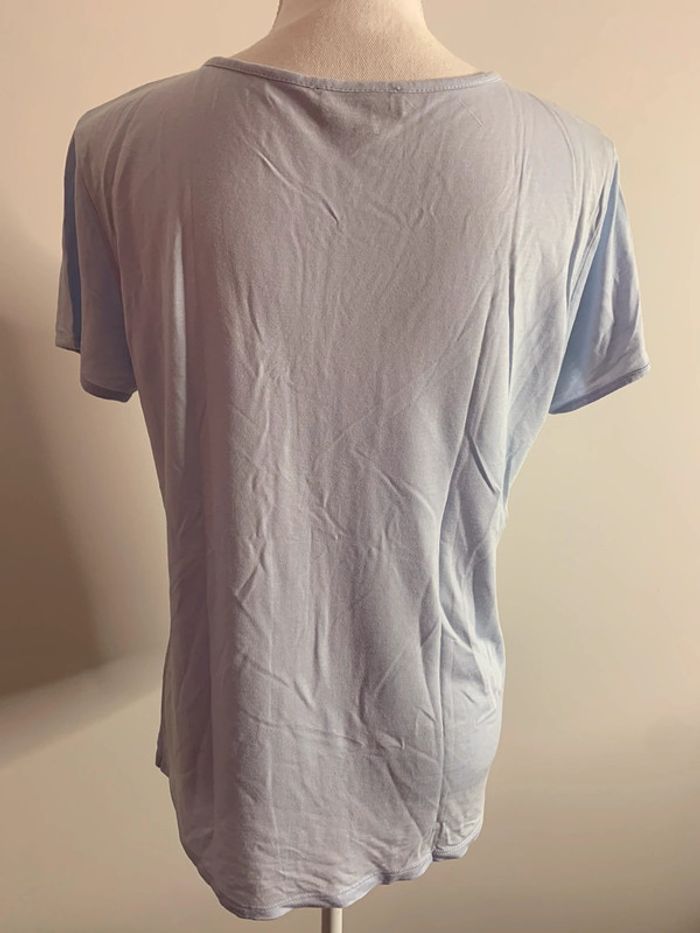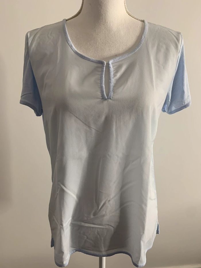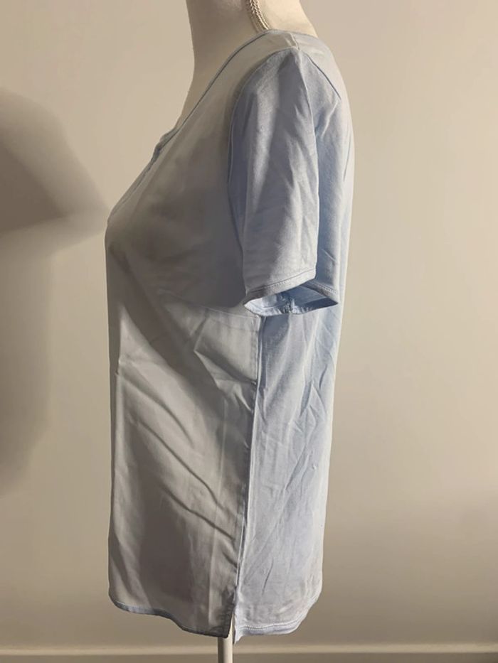 Blouse bleue ciel - Excellent état - Caroll - Taille 40 équivalent L - Manches courtes - Bi matière