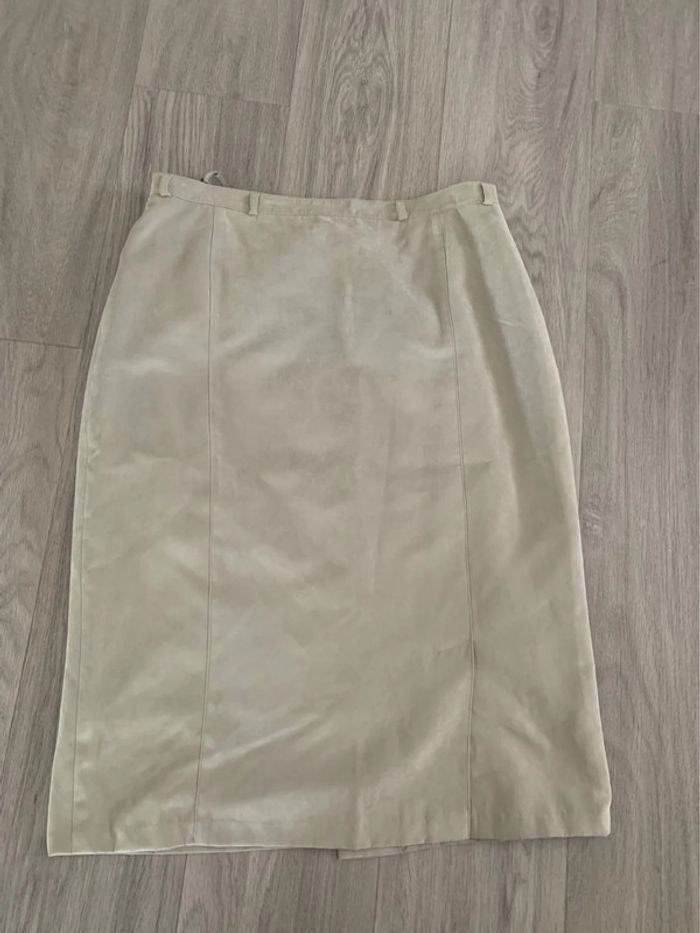 Jupe en suédine kaki et grise Vintage T48 - photo numéro 1