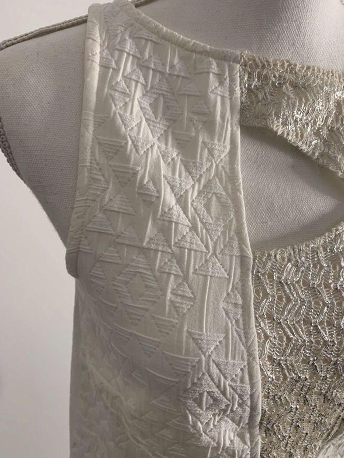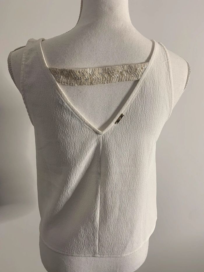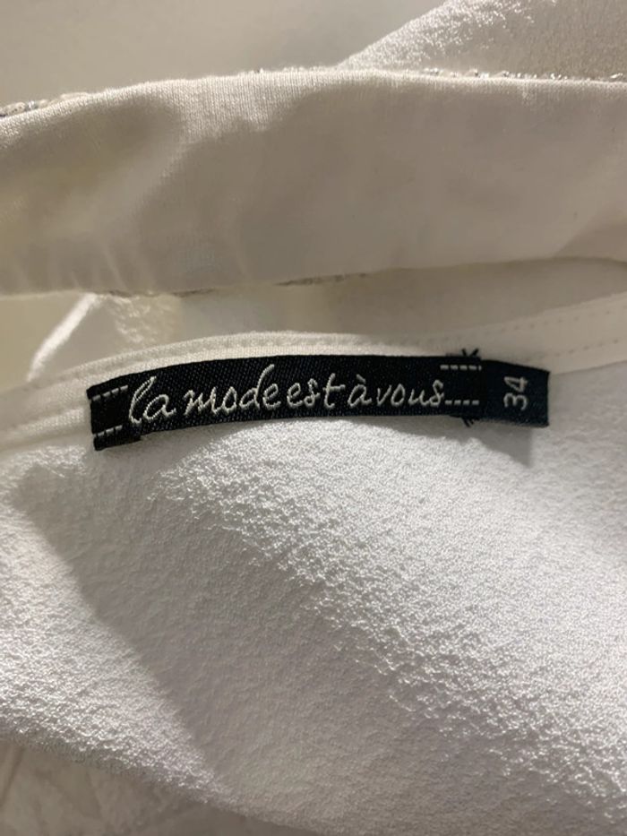 Débardeur brodé blanc - Excellent état - Taille 34 XS - La mode est à vous - Empiècements asymétriques - Détails argentés