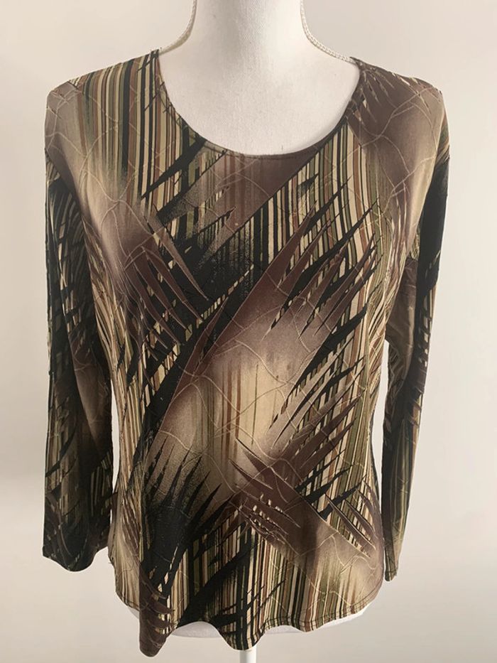 Blouse bariolée kaki marron TL - photo numéro 1