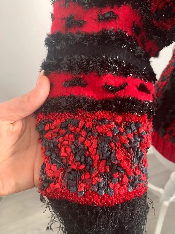 Pull en angora rouge et noir Vintage T36/38 - photo numéro 2