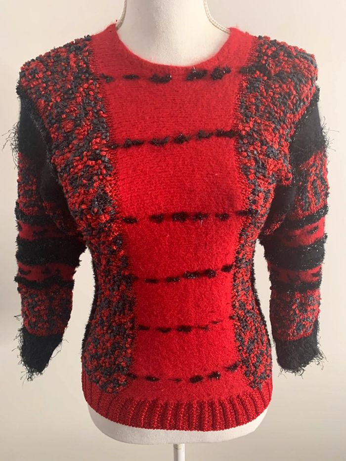 Pull en angora rouge et noir Vintage T36/38 - photo numéro 1