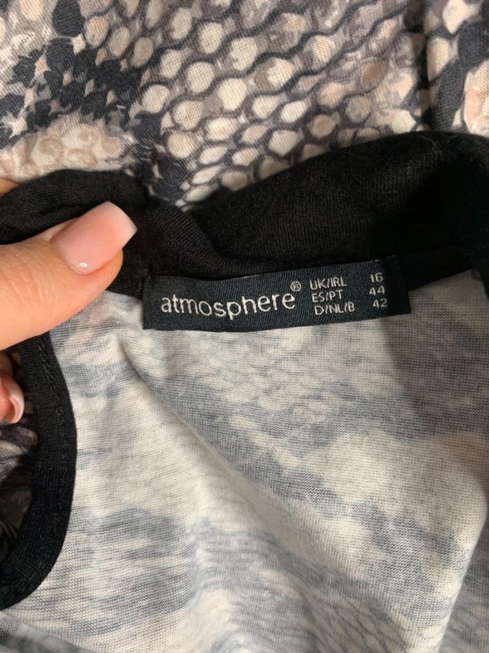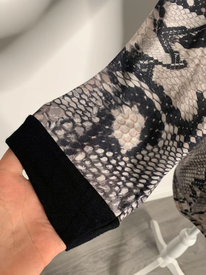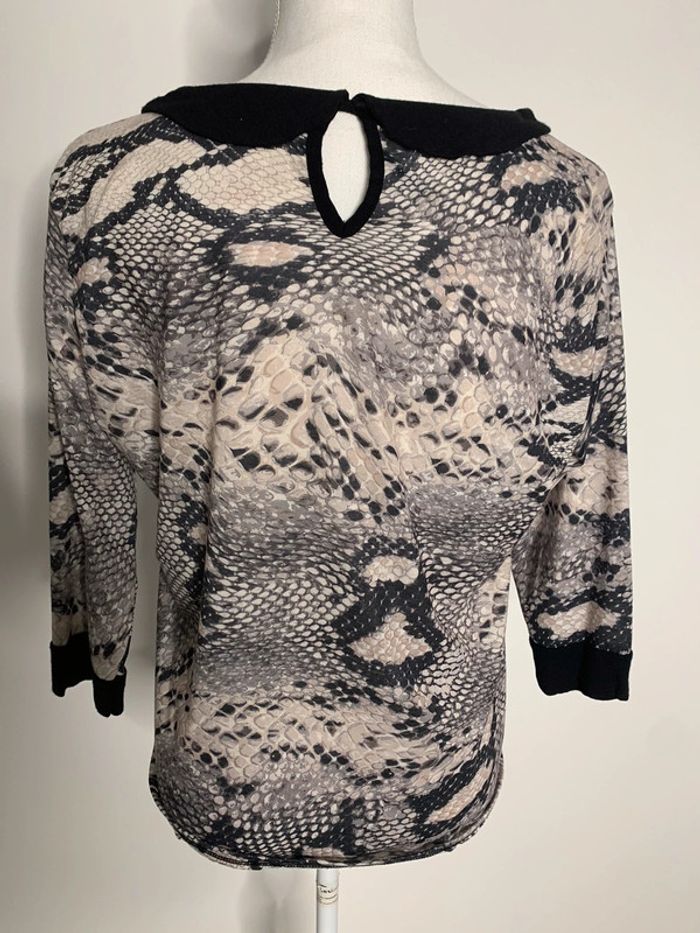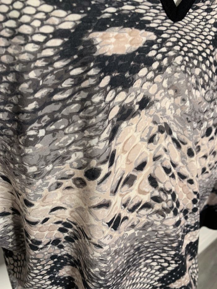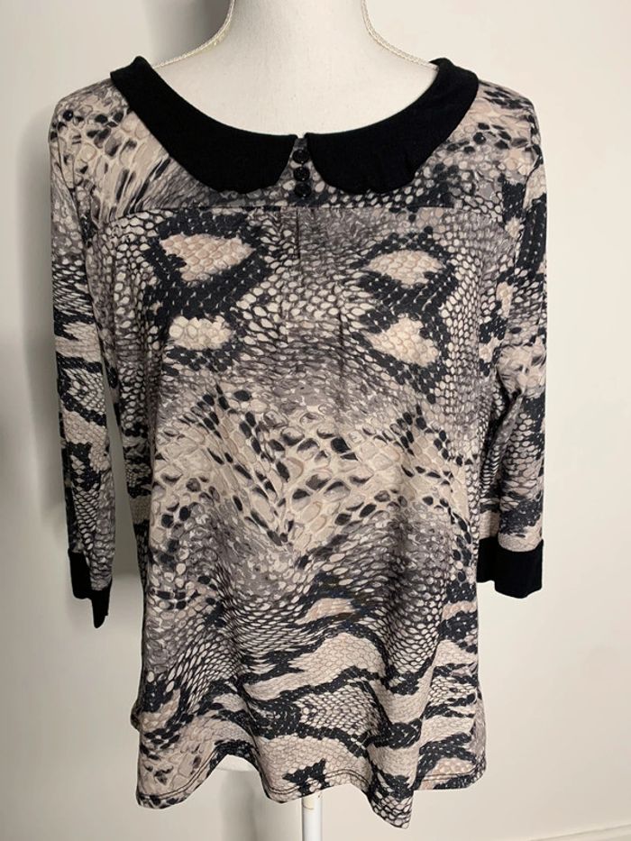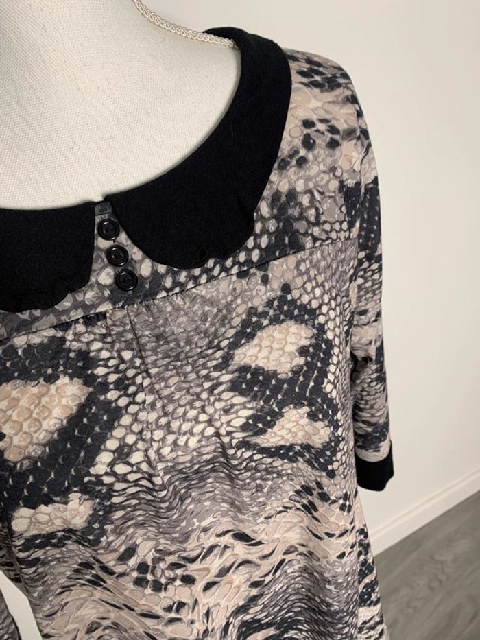 Blouse col Claudine - Excellent état - Taille XL FR 42 - Imprimés python serpent - Manches 3/4 - Col Claudine noire - Dans les tons gris et beige - Primark Atmosphère