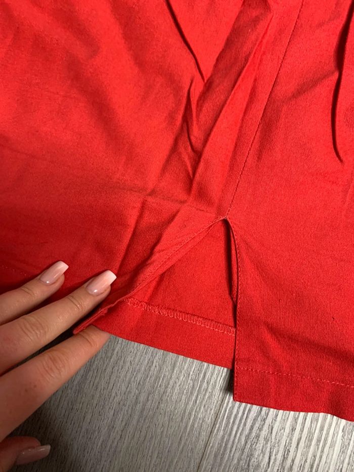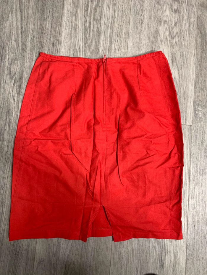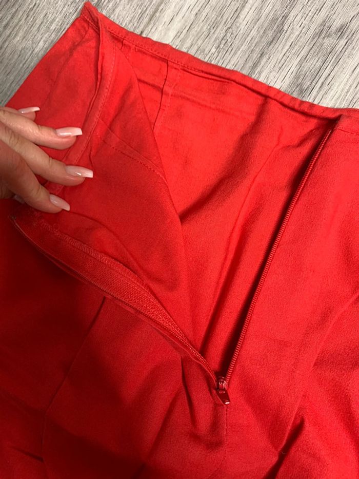 Jupe rouge - Excellent état - Taille 34 XS - Zip à l’arrière - Légèrement fendu à l’arrière - Coupe cintrée Dimensions: - 34cm à la taille - 50cm de long