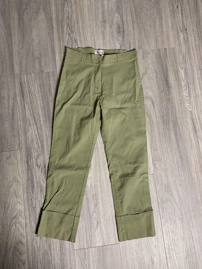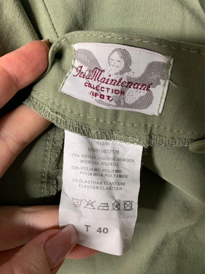 Pantalon skinny slim - Excellent état - Couleur kaki vert - Ici et maintenant - Taille 40 équivalent L - Viscose, polyamide, elastane - Ourlet extérieur large - Matière ultra stretch - Collection des années 90’ Dimensions: - De 33 à 40cm à la taille - Longueur entre jambe 61cm - Longueur totale 85cm