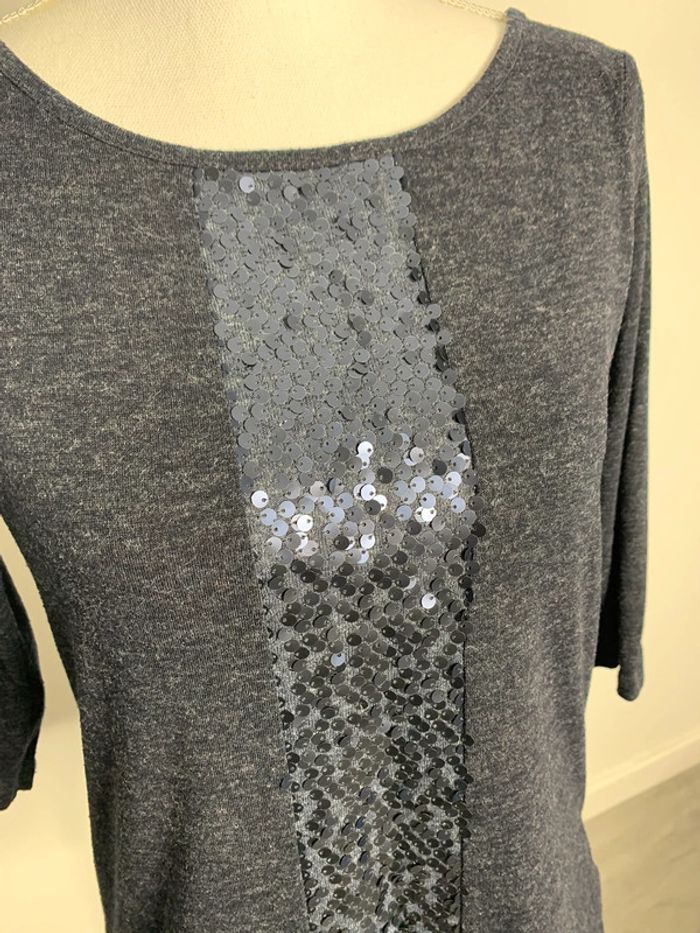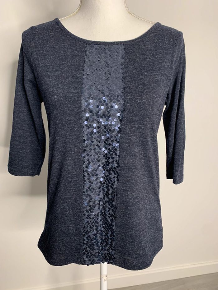 Blouse à sequins - Excellent état - Bleu marine - Doublure intérieure pour l’avant - Taille 1 équivalent 36 S - Manches 3/4 - Large bande de sequins
