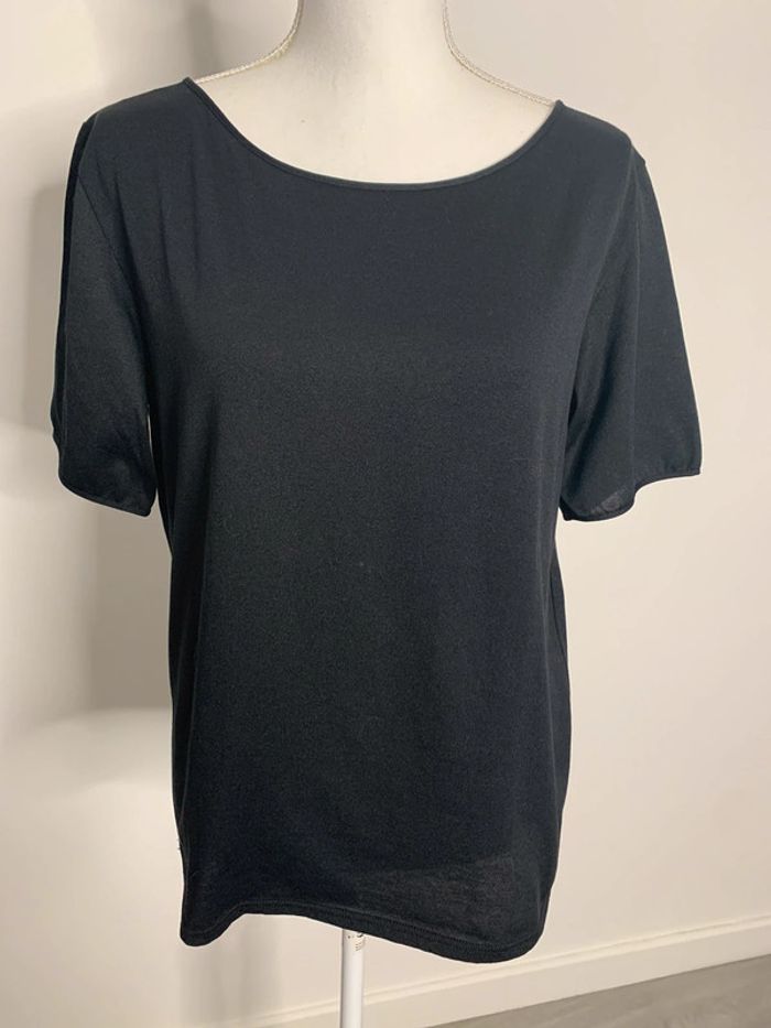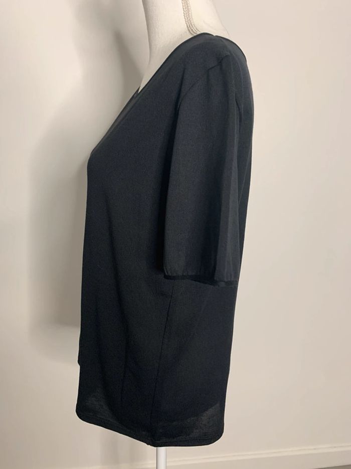 T-shirt noir - Excellent état - Taille 42 équivalent XL - Manches courtes - Tissus fluide - Légèrement transparent Dimensions: - Largeur aisselles 50cm - Longueur totale 62cm