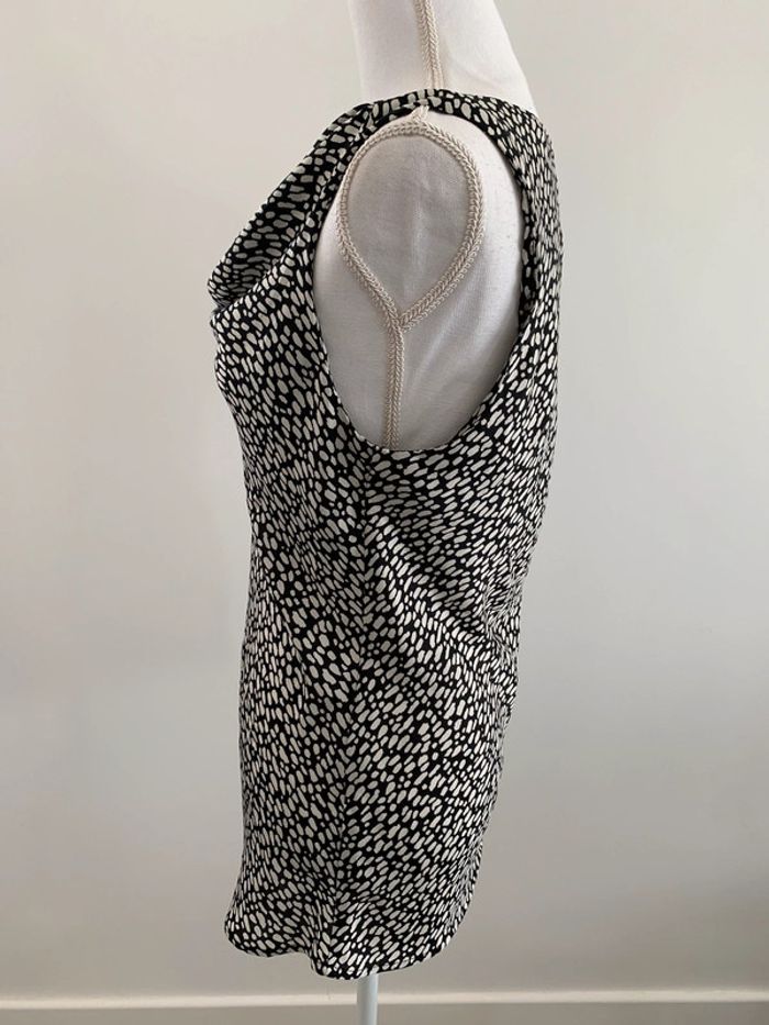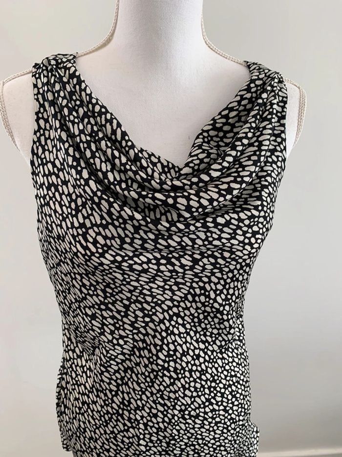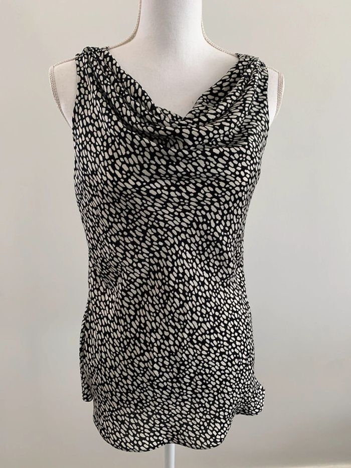 Top à motifs - Excellent état - Noir et blanc - Camaïeu - Taille 38 équivalent M - Col drapé