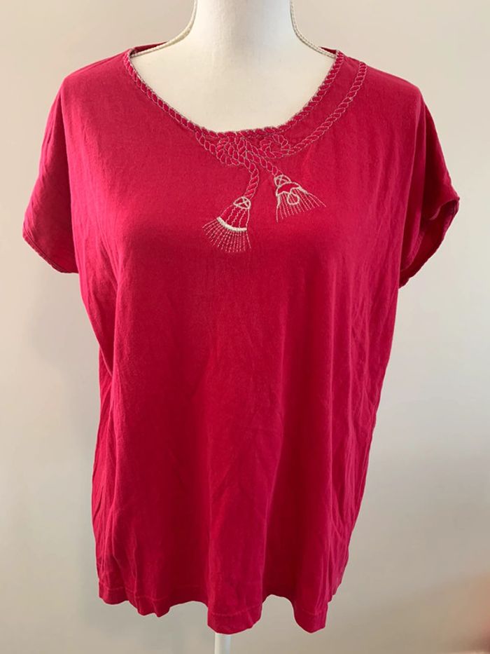 T-shirt noeud Marin pompon - Excellent état - Kiabi Decade Vintage années 90’ - Taille 44 équivalent XXL - Couleur framboise écrasée - Noeud Marin / pompons brodés argentés - 100% coton (plus d’étiquette)
