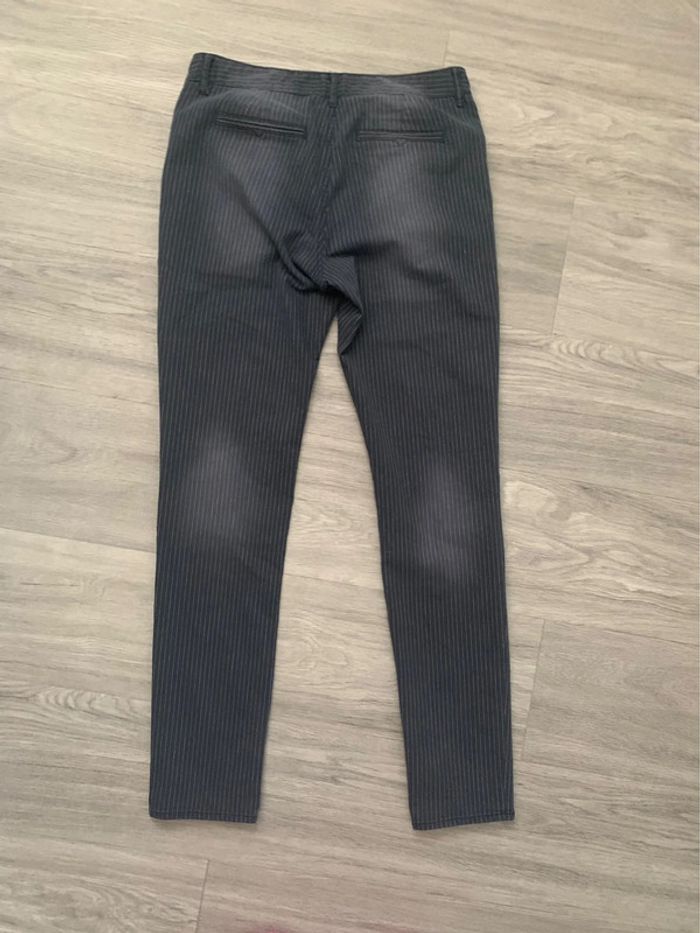 Jean skinny à rayures - Excellent état - Taille 38 équivalent M - Gris foncé et blanc - Effet délavé - Coton, polyester et spandex - Matière stretch - Coupe skinny slim